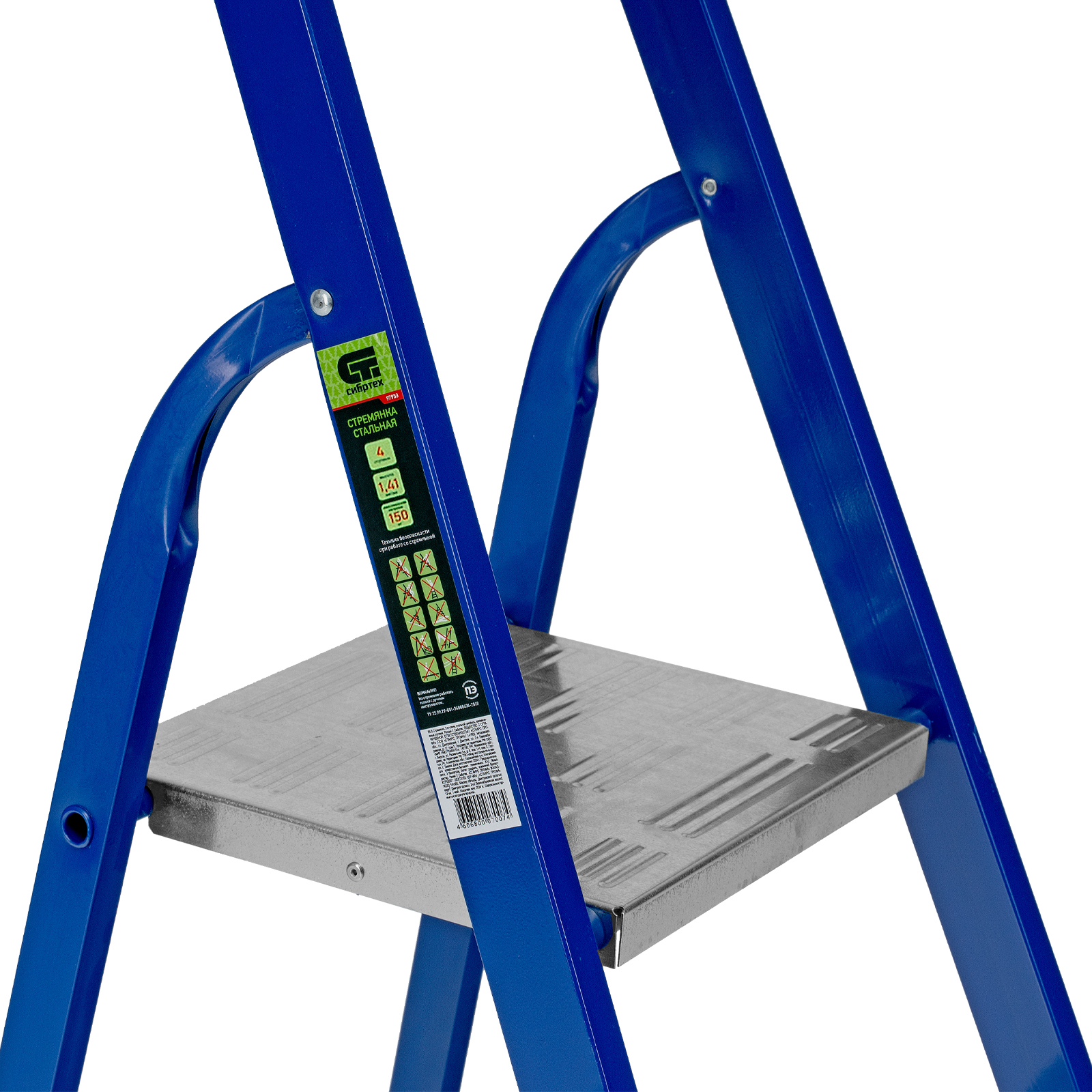 Стремянка, 4 ступени, стальной профиль, алюминиевые ступени Сибртех в Уфе