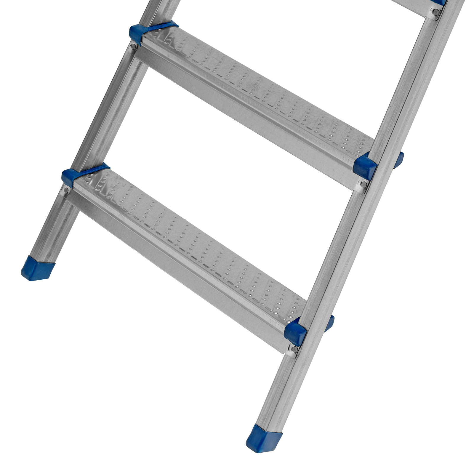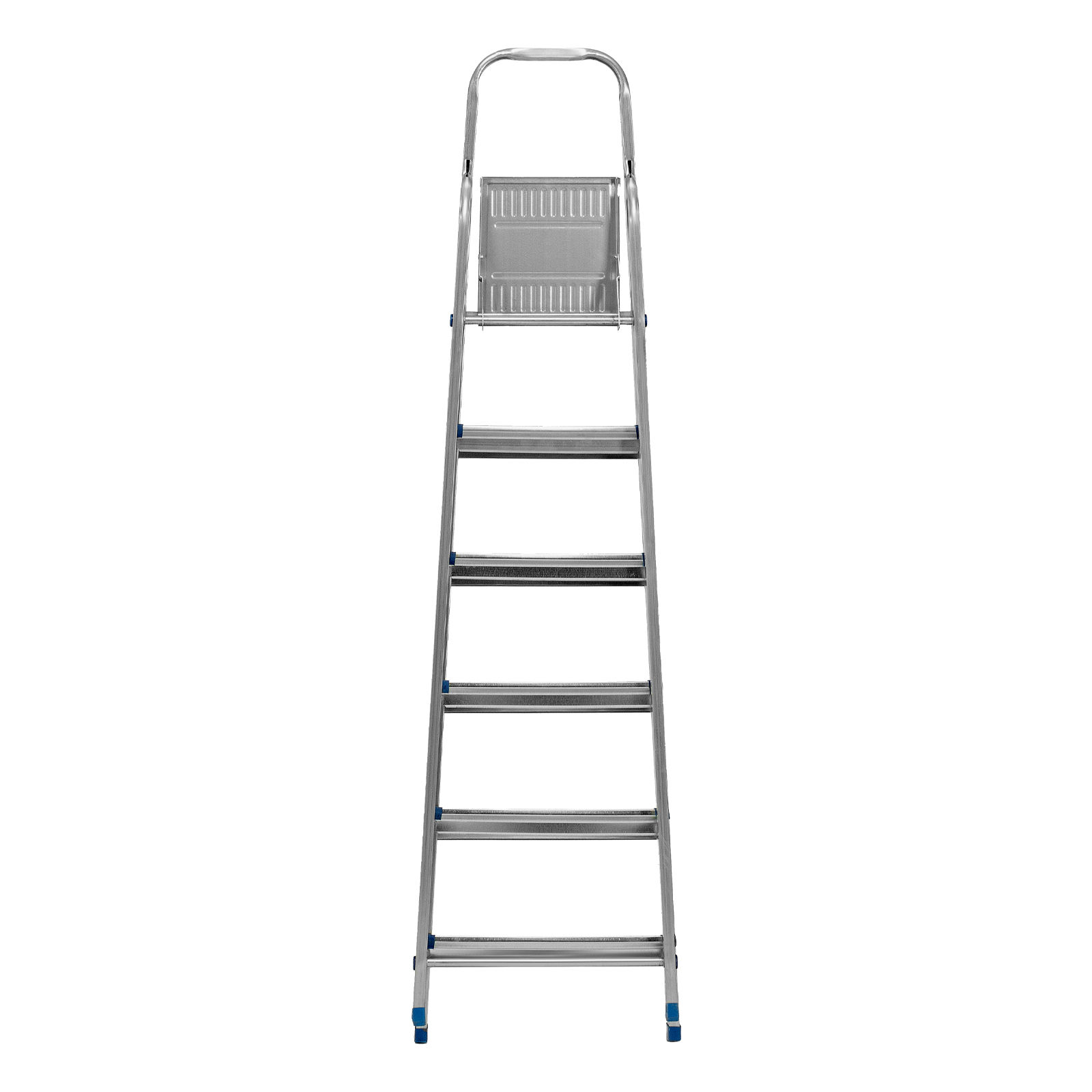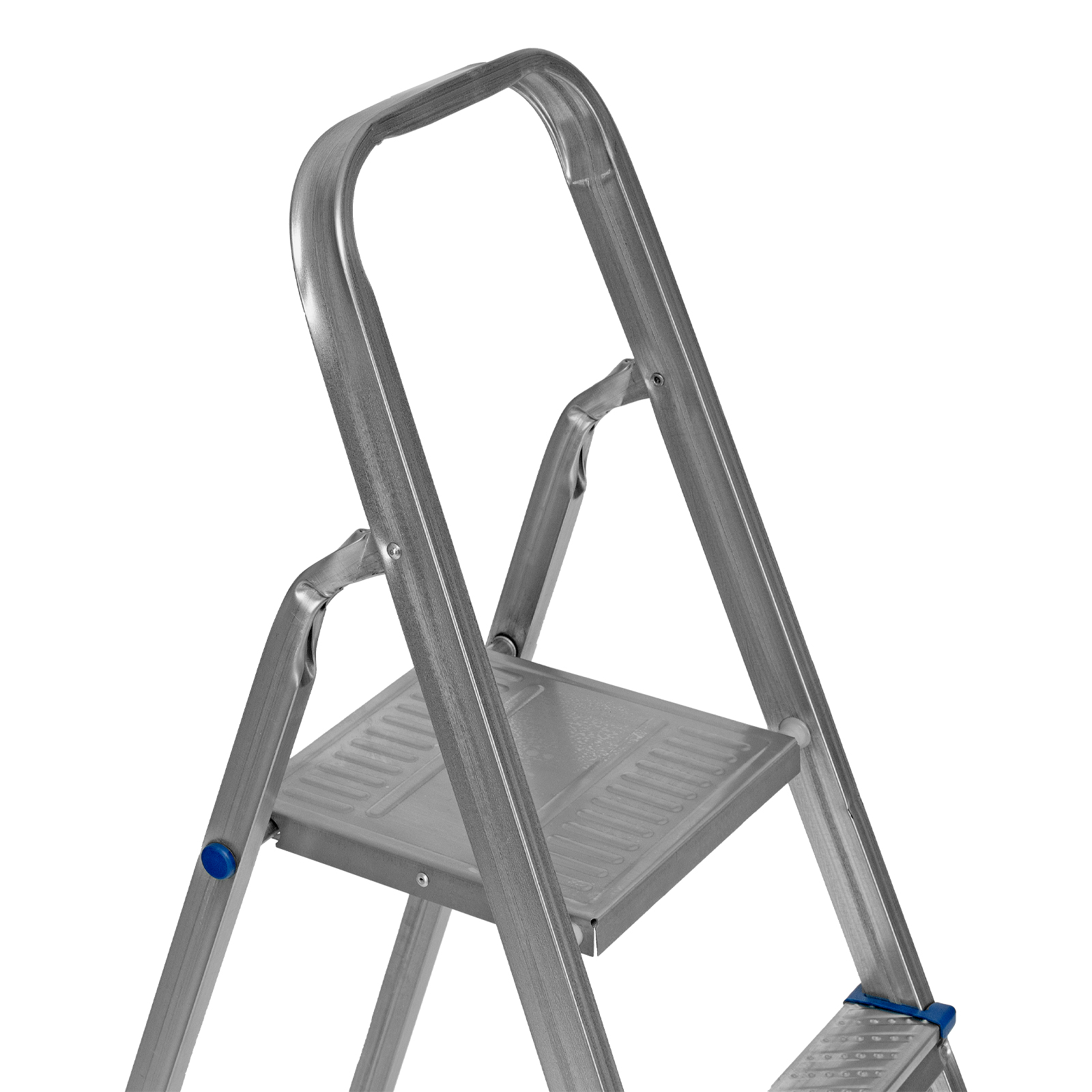 Стальная оцинкованная стремянка Сибртех 97838 с 6 ступенями позволяет повесить полку, картину или шкафчик, достать нужный предмет и решить другие задачи, для которых требуется доступ к предметам на высоте. Рама и ступени из стального профиля выдерживают вес до 120 кг. Расстояние от опорной поверхности до площадки составляет 121 см, при среднем росте пользователя 170 см рабочая высота лестницы — 321 см. Необходимо соблюдать технику безопасности: размещать стремянку только на ровной плоскости и не использовать ее для работы с дрелью, шуруповертом и другим электроинструментом.