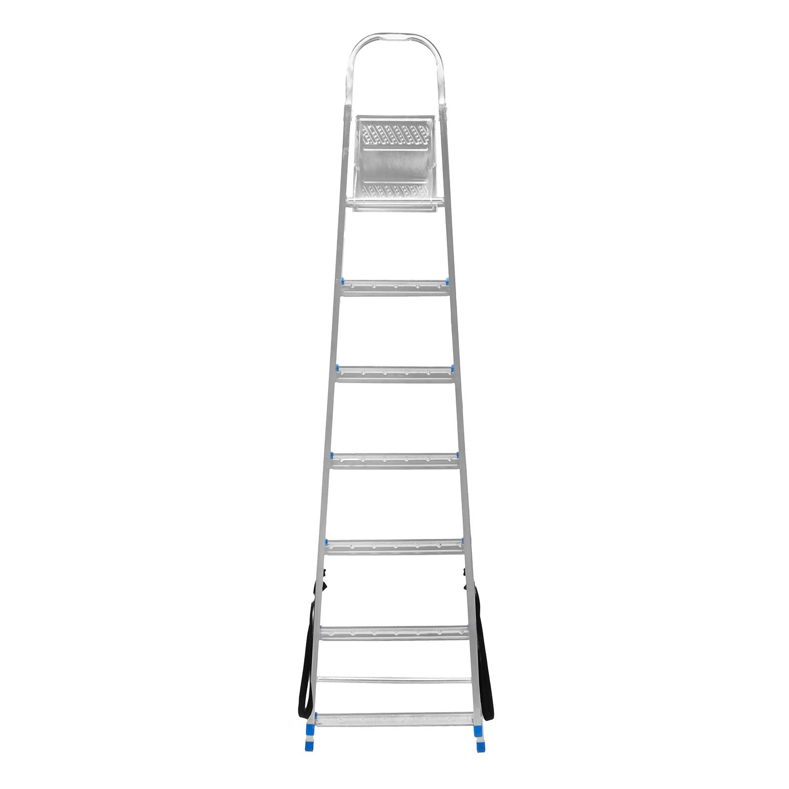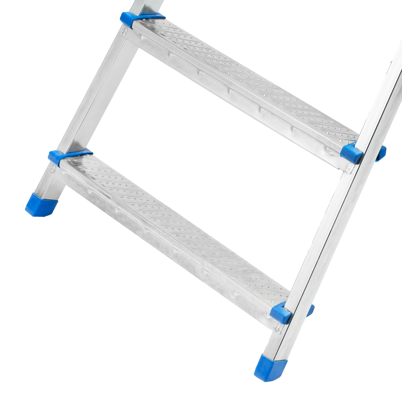Стальная оцинкованная стремянка Сибртех 97839 с 7 ступенями позволяет повесить полку, картину или шкафчик, достать нужный предмет и решить другие задачи, для которых требуется доступ к предметам на высоте. Рама и ступени из стального профиля выдерживают вес до 120 кг. Расстояние от опорной поверхности до площадки составляет 143,5 см, при среднем росте пользователя 170 см рабочая высота лестницы — 343,5 см. Необходимо соблюдать технику безопасности: размещать стремянку только на ровной плоскости и не использовать ее для работы с дрелью, шуруповертом и другим электроинструментом.