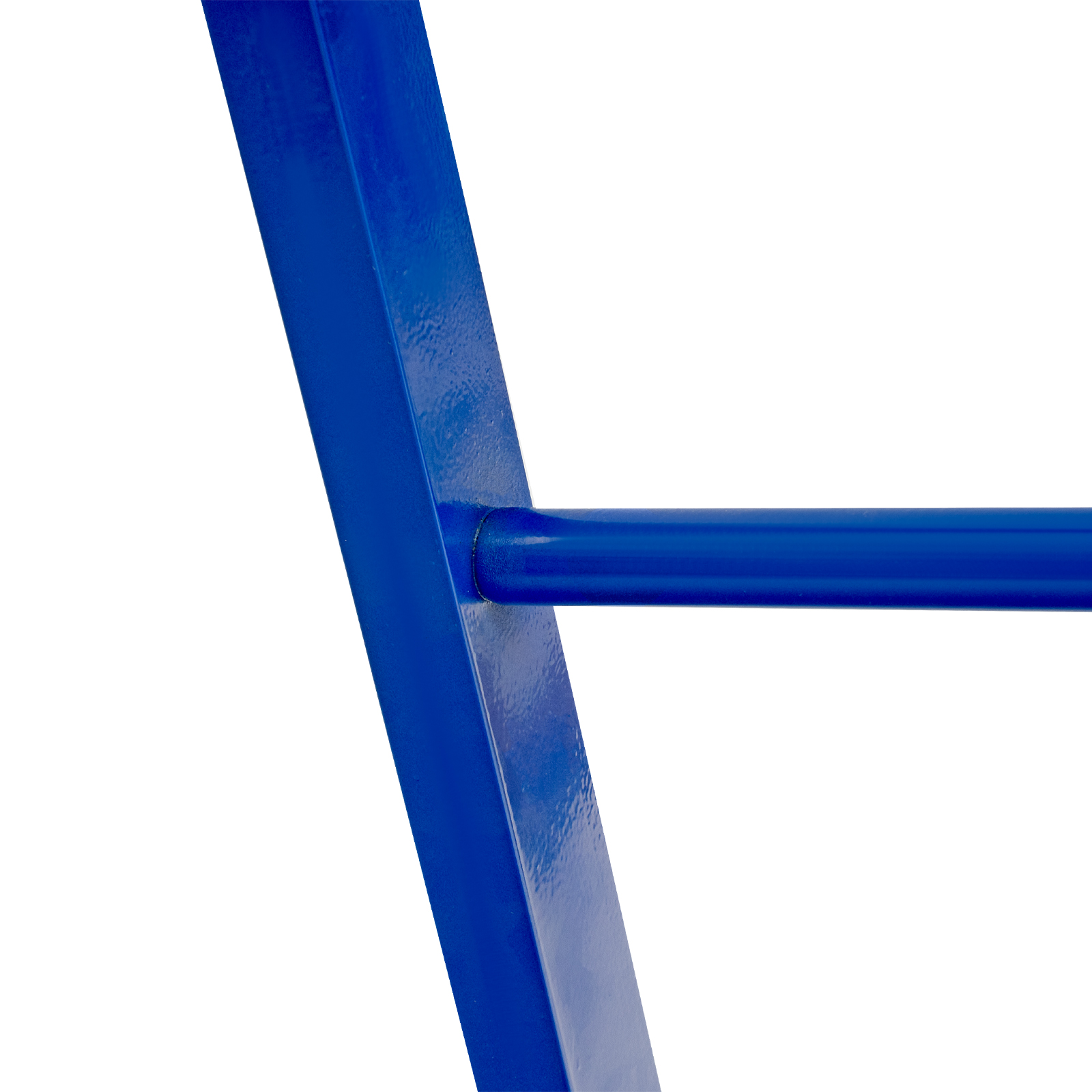 - Надежность — рама изготовлена из профилированной стали, стальная верхняя площадка с зацепами прочно фиксирует стремянку в рабочем положении, страховочные ленты придают дополнительную прочность конструкции.