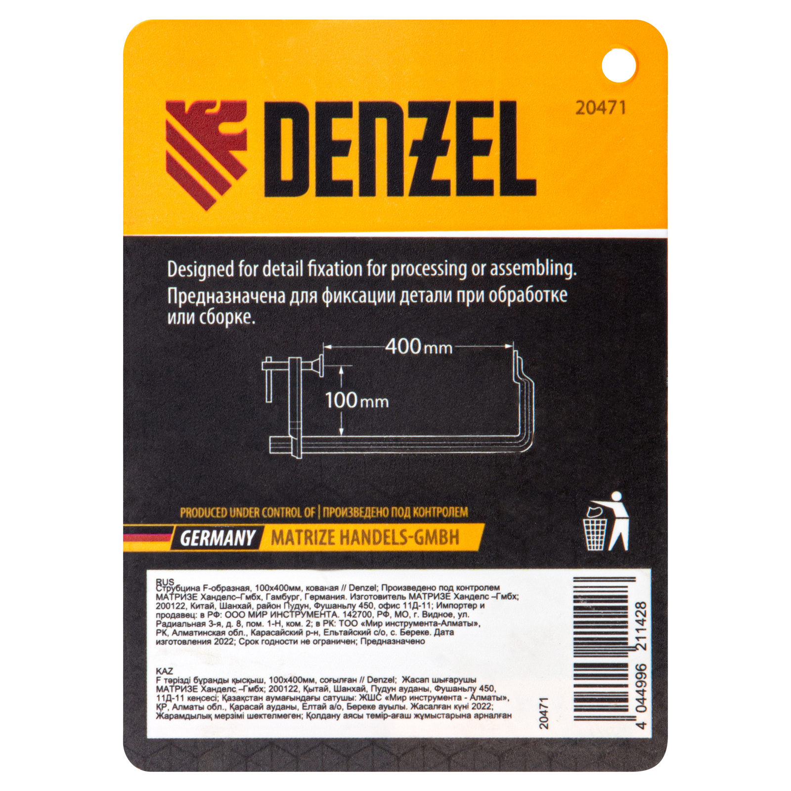 Струбцина F-образная, 100x400мм, кованая Denzel в Уфе