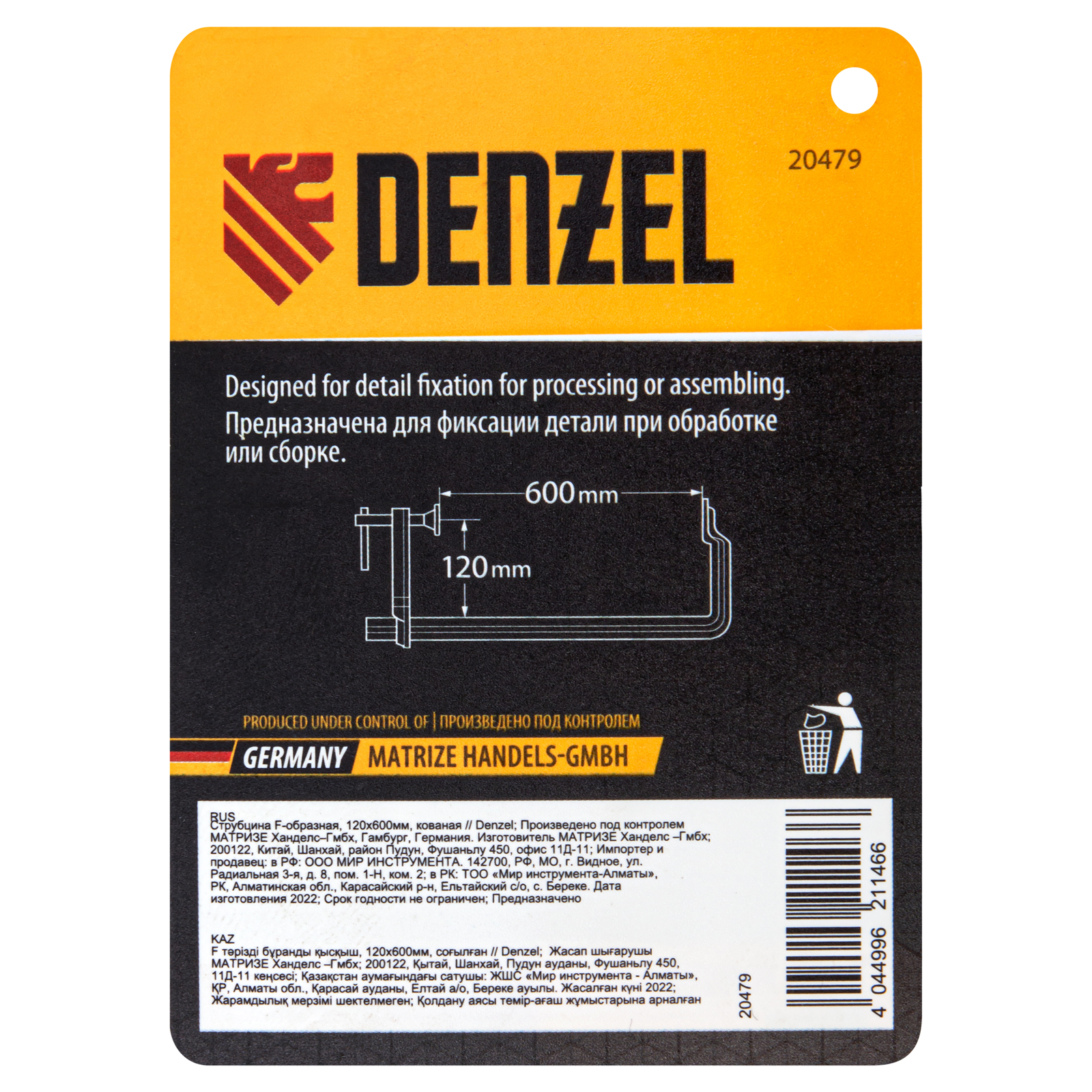 Струбцина F-образная, 120x600мм, кованая Denzel в Уфе