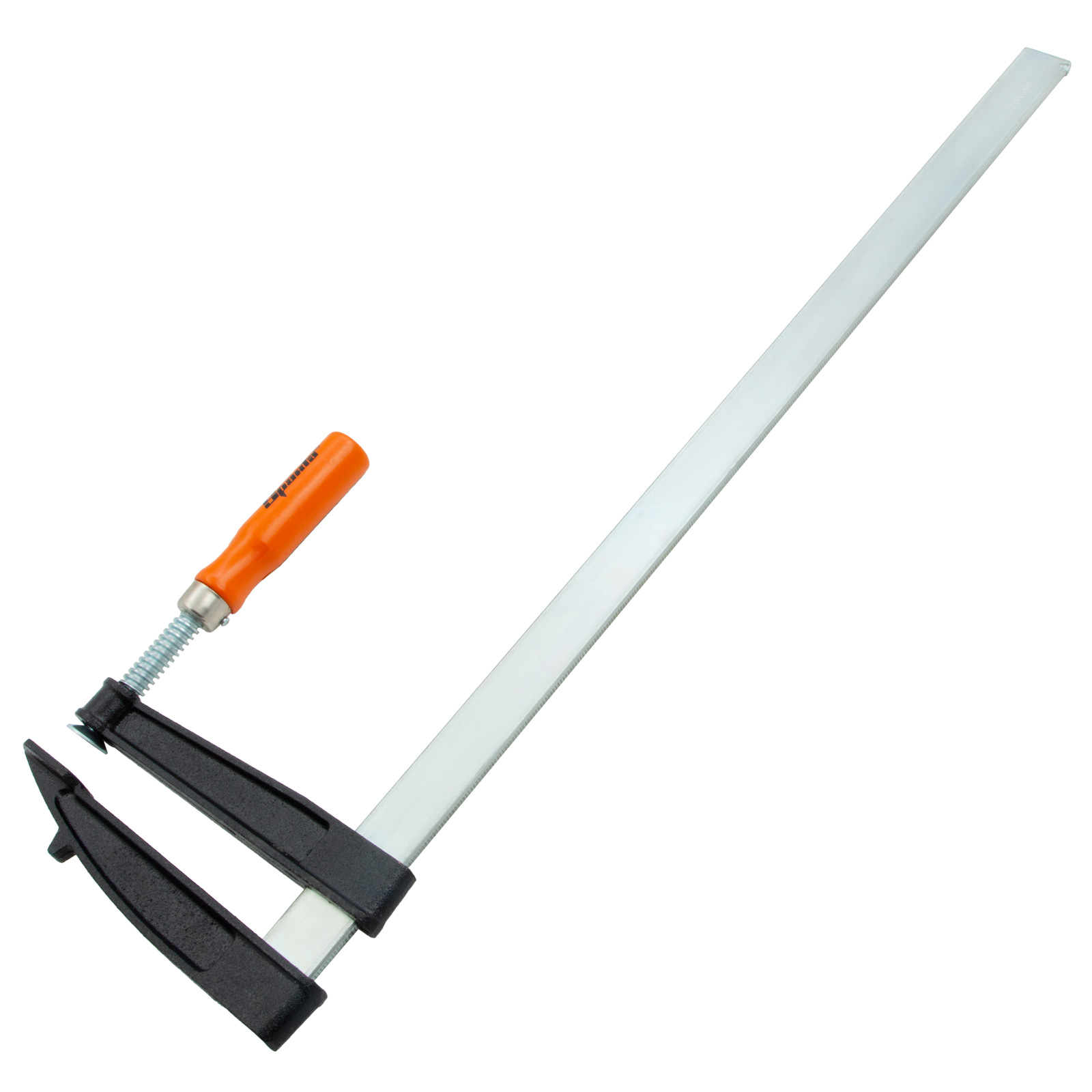 F-образная струбцина Sparta 204415, 500 х 120 х 570 мм, используется в столярном и слесарном деле и позволяет фиксировать заготовки из металла, древесины и других материалов для их соединения или обработки. Деталь помещают между губками, одна из которых подвижна и служит для регулировки величины захвата. Винтовой зажим позволяет прикладывать значительное усилие для надежной фиксации. Защитные накладки предотвращают повреждение детали. Элементы конструкции выдерживают высокую температуру, поэтому струбцина подходит для проведения сварочных работ, при этом пластиковые накладки необходимо снять.