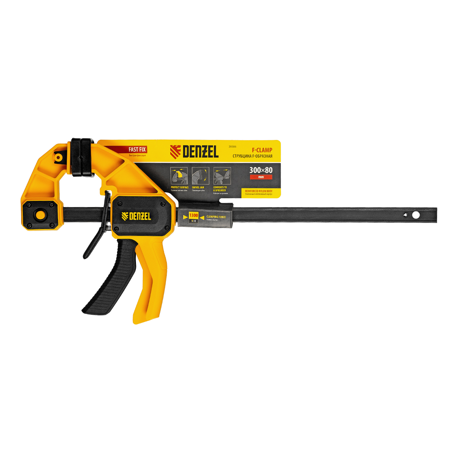 Струбцина F-образная, быстрозажимная, 300 х 80 мм, усиленный нейлоновый корпус Denzel в Уфе