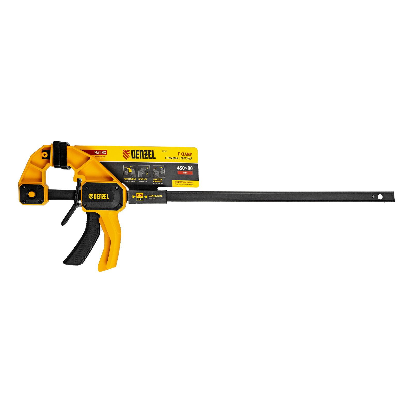 Струбцина F-образная, быстрозажимная, 450 х 80 мм, усиленный нейлоновый корпус Denzel в Уфе