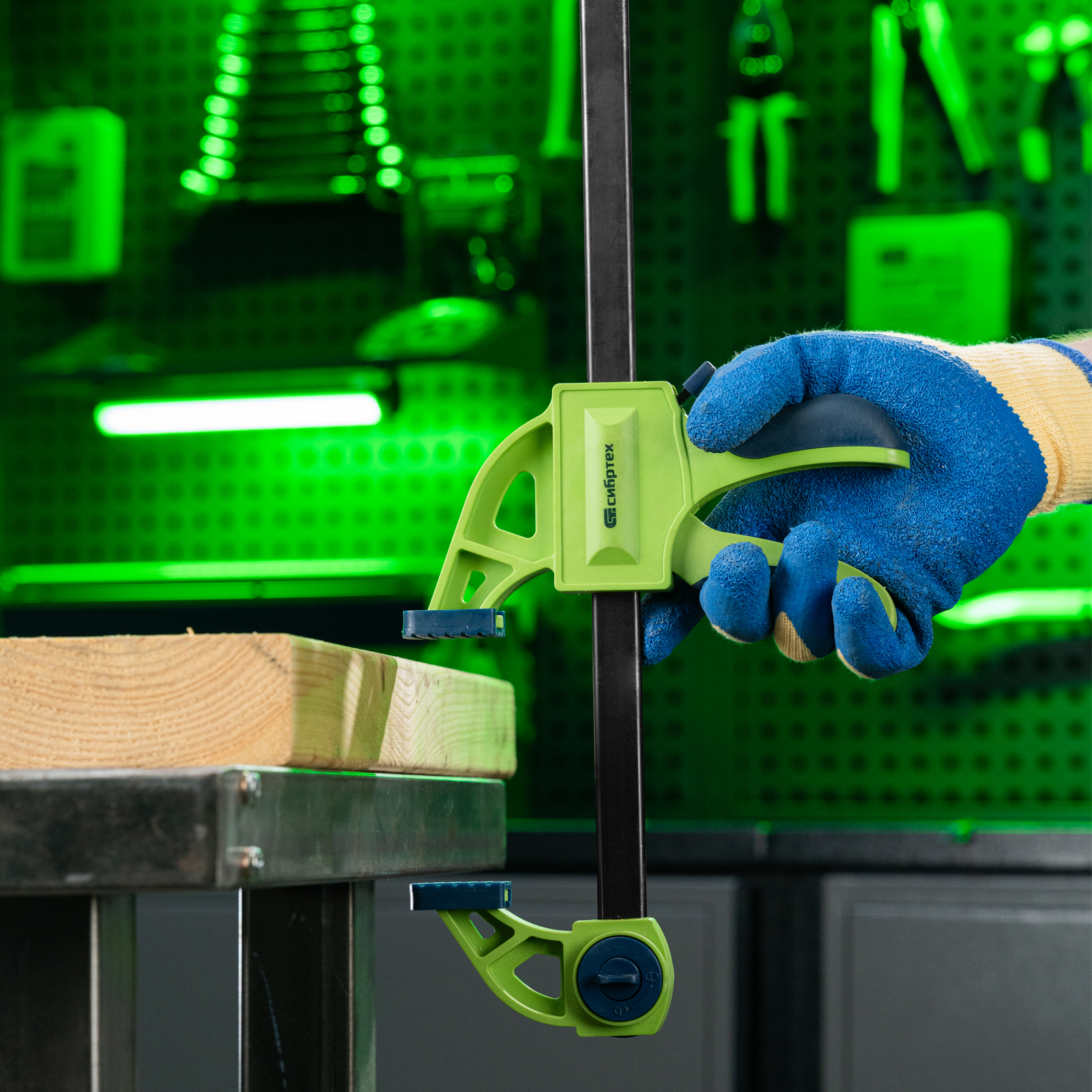 F-образная быстрозажимная струбцина Сибртех 20568 длиной 1130 мм, с шириной и глубиной зажима 900 и 70 мм соответственно, в пластиковом корпусе, с фиксатором и двухкомпонентной рукояткой, позволяет зажимать заготовки для их дальнейшей обработки или сборки. Помогает решать множество задач благодаря оптимальной глубине зажима. Пластинчатый механизм пошагово перемещает подвижную губку вдоль направляющей до достижения максимально плотного захвата детали. Фиксатор препятствует движению губки в обратную сторону. Струбцина пригодится в столярной мастерской, а также будет полезна в быту.