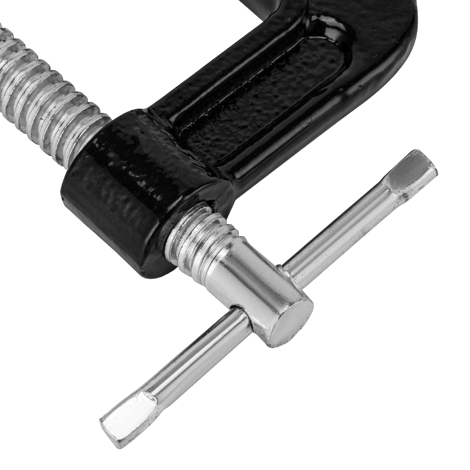 G-образная струбцина Sparta 206535 с шириной зажима 75 мм надежно фиксирует различные детали для дальнейшего склеивания, сверления, пиления, шлифования или сварки. Винт с воротком и крупной червячной резьбой позволяет зажимать детали плавно и со значительным усилием. Струбцина будет полезна домашнему мастеру.
