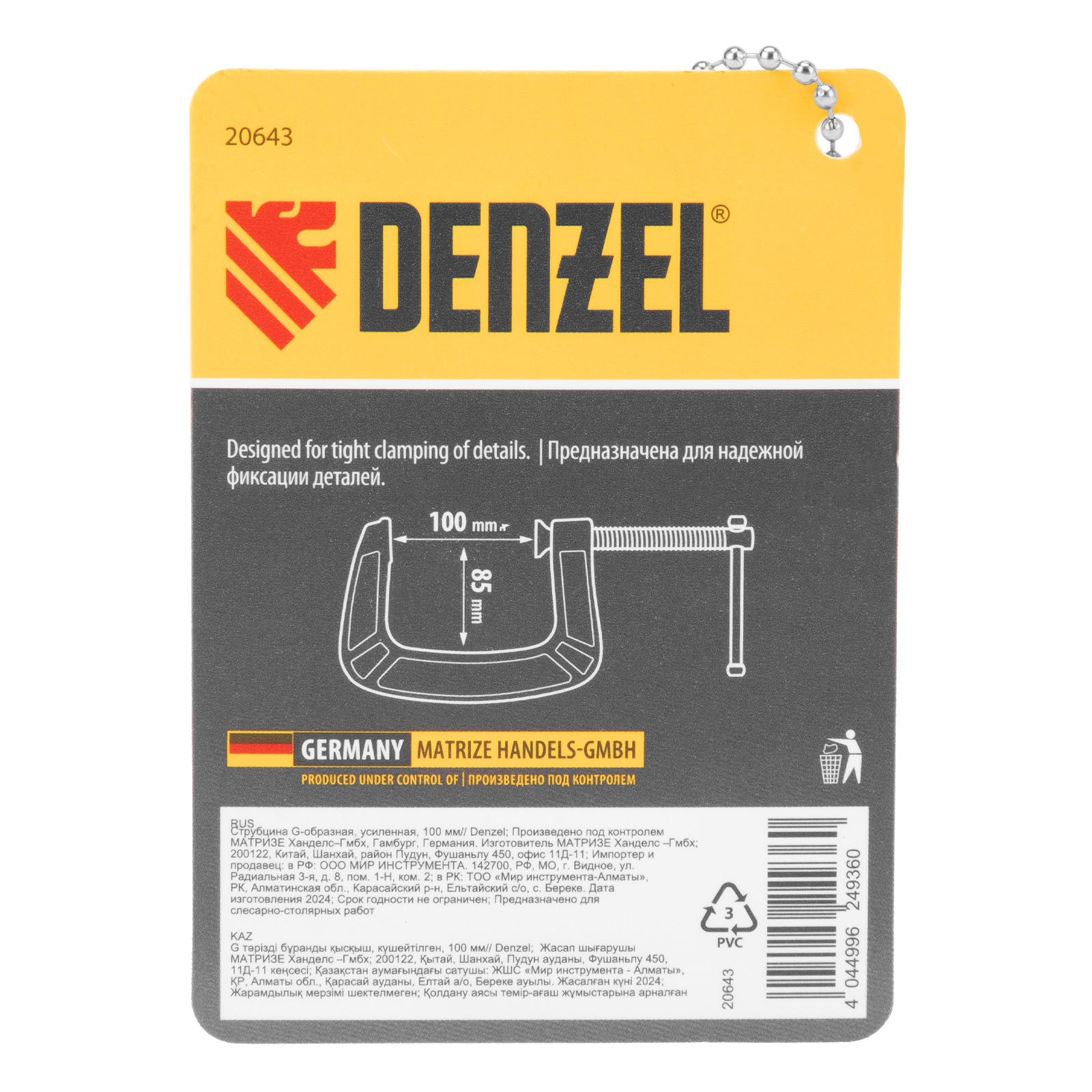 Струбцина G-образная, усиленная, 100 мм Denzel в Уфе