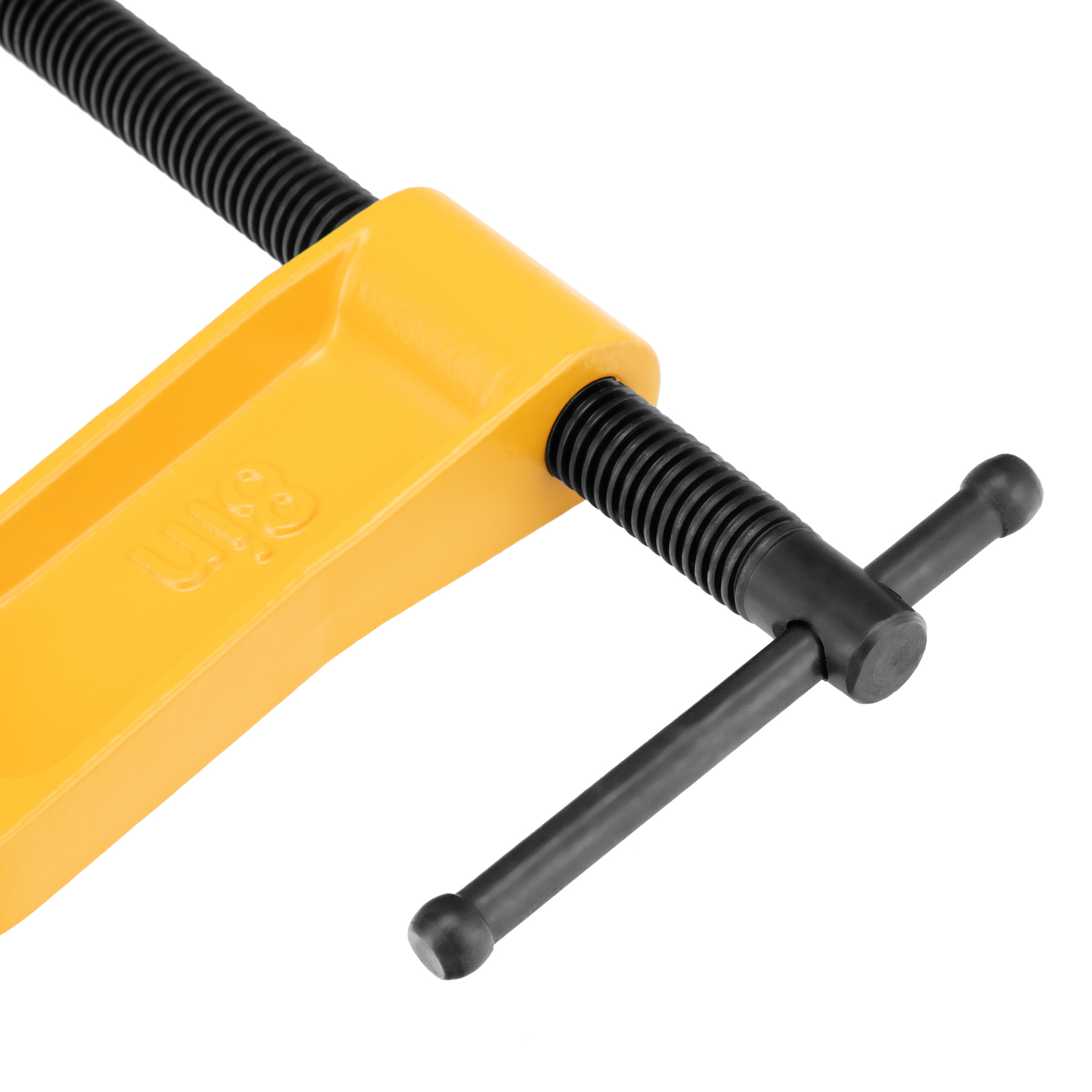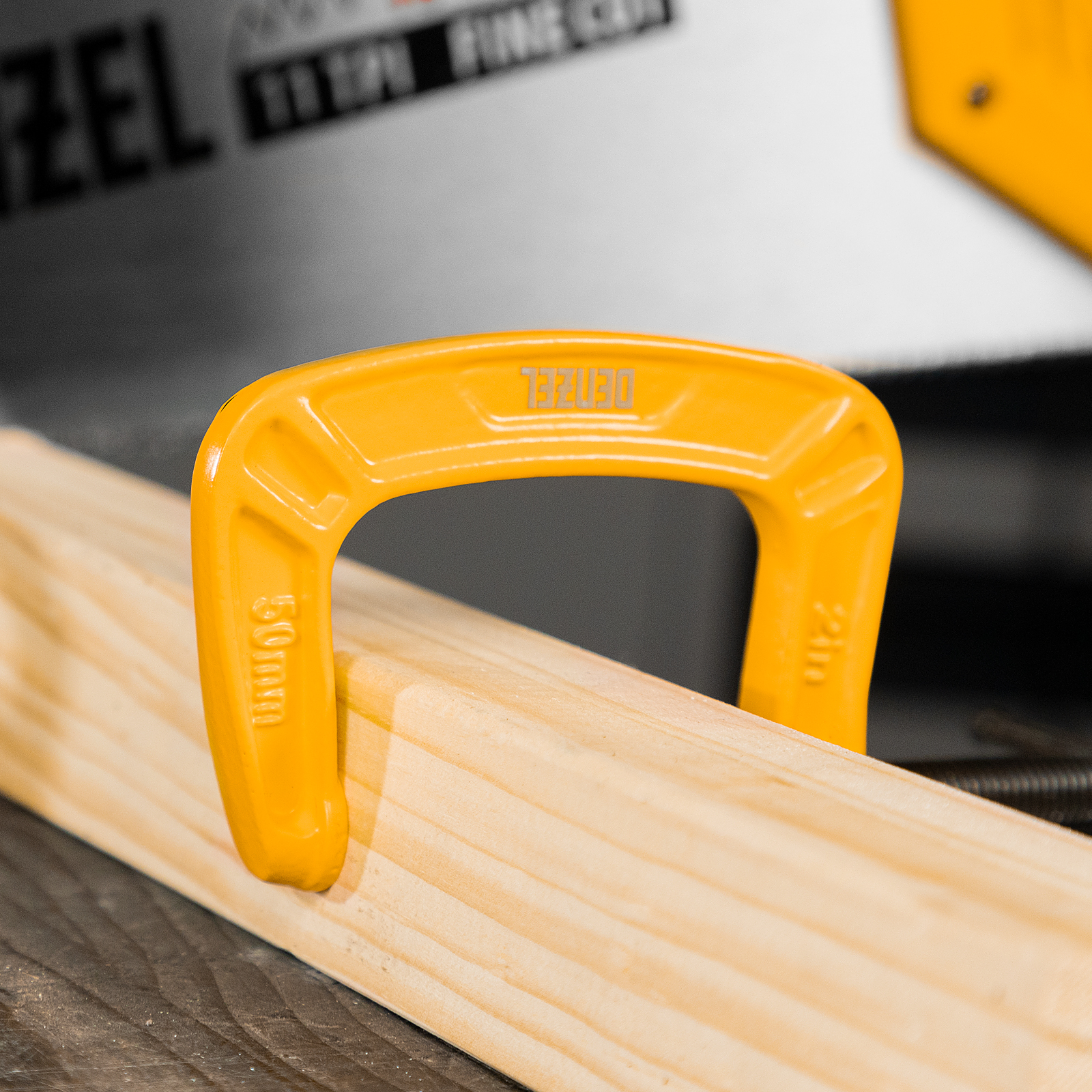 G-образная струбцина Denzel 20641 с максимальной шириной зажима 50 мм используется для фиксации заготовок или закрепления их на верстаке, станке или между собой. Позволяет склеивать детали, а также сверлить их, шлифовать, опиливать и проводить другие работы. Может использоваться во время выполнения сварочных работ. Винт с трапециевидной резьбой обеспечивает надежную фиксацию предметов. Струбцина применяется в слесарном и столярном деле, будет полезна также домашнем хозяйстве.