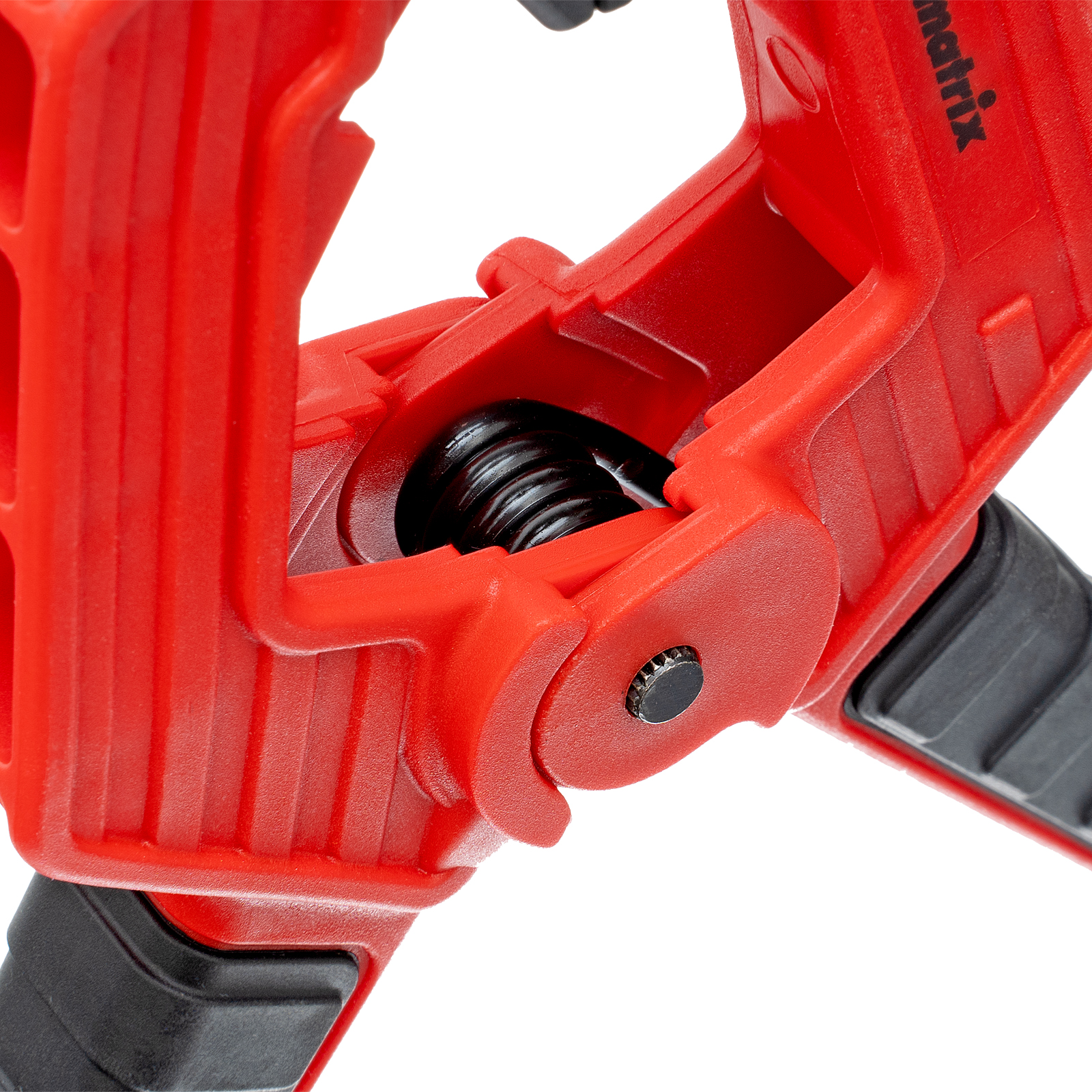 Струбцина клещеобразная Matrix 20793 с усиленной пружиной, в пластиковом корпусе, с двухкомпонентными рукоятками, способна зажимать и крепко удерживать детали толщиной до 3" (75 мм). Пригодится для склеивания или разметки заготовок. Струбцина пригодится в столярной мастерской, дома или на даче.
