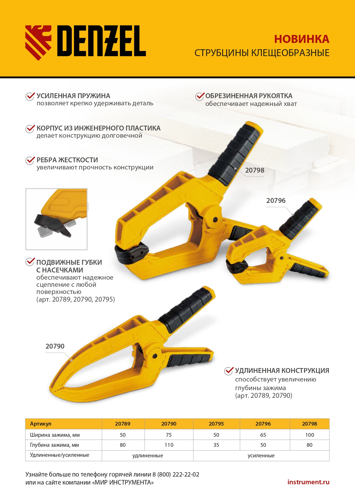 Струбцина клещеобразная, усиленная 50 х 35 мм, двухкомпонентные рукоятки Denzel в Уфе
