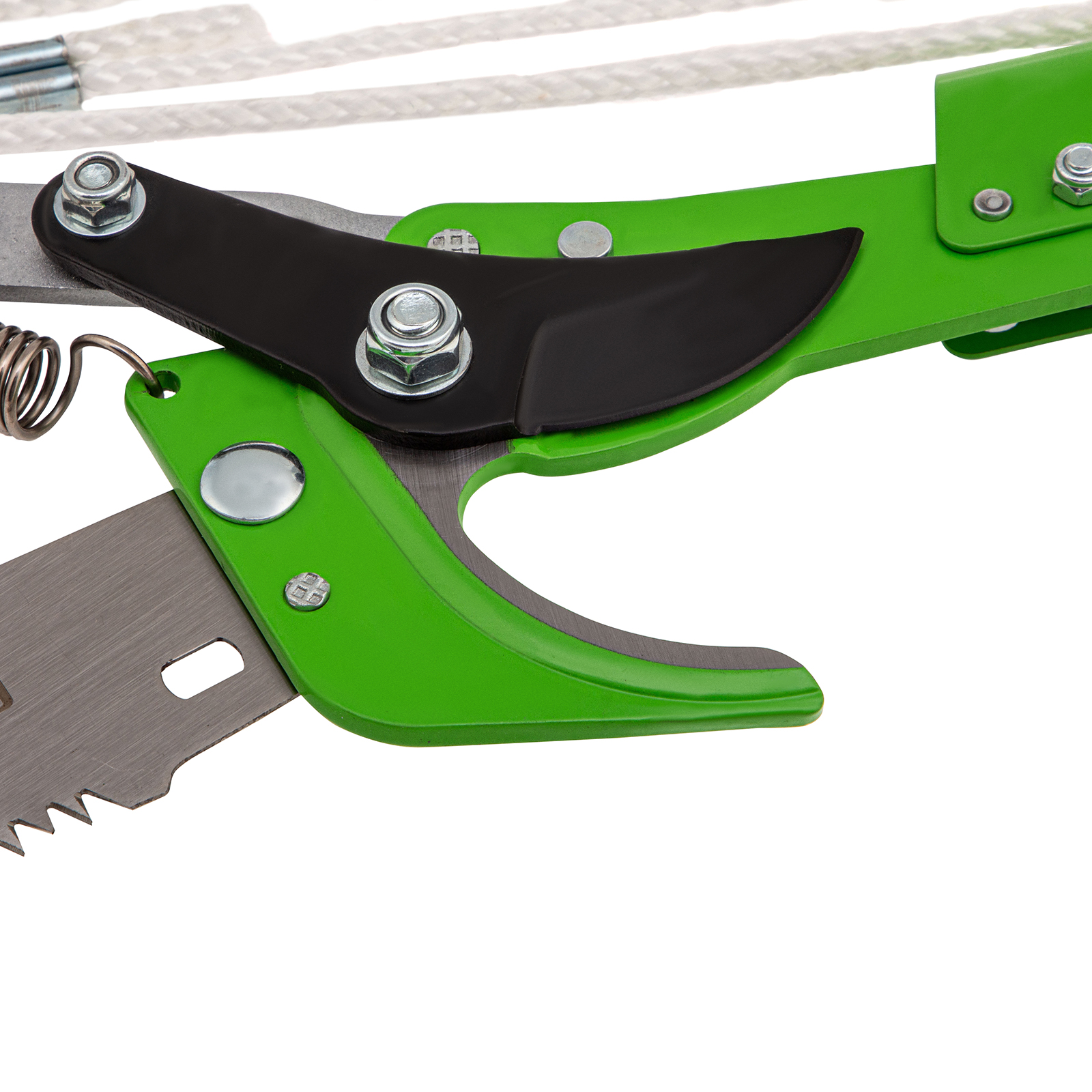 Штанговый сучкорез прямого реза с пилой Palisad 60593 со стальной тулейкой диаметром 25 мм предназначен для срезания живых веток диаметром до 20 мм. Пила позволяет обрезать одеревенелые ветки толщиной до 60 мм. Режущее лезвие с тефлоновым покрытием легко рассекает древесину и не боится коррозии. Получить доступ к высоко расположенным ветвям можно, установив сучкорез с пилой на более длинную штангу. Инструмент используется для работ на дачном участке.