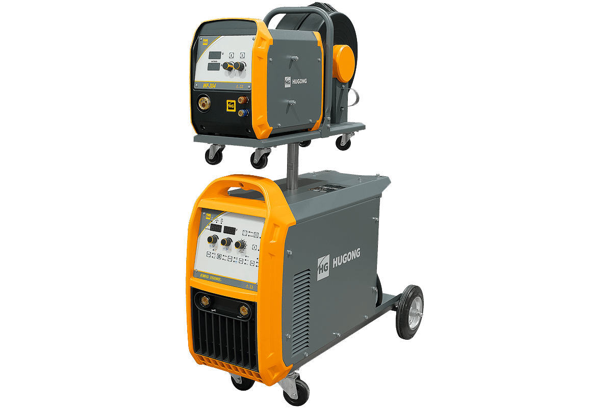 Сварочный полуавтомат HUGONG EMIG 350WE III (цифровой подающий) (без горелки и кабель-пакета) производство HUGONG, для поставок в Россию HUG WELDING. EMIG 350WE III - передовая модель промышленных полуавтоматов. Мощное железо в тандеме с передовыми технологиями обеспечивают высокопрофессиональный уровень сварки. Регулировка параметров доступна на удобном цифровом подающем механизме с цифровым дисплеем. Многофункциональность режимов - MMA, MIG/MAG, LIFT TIG и FCAW закроет потребности самых разных производств.