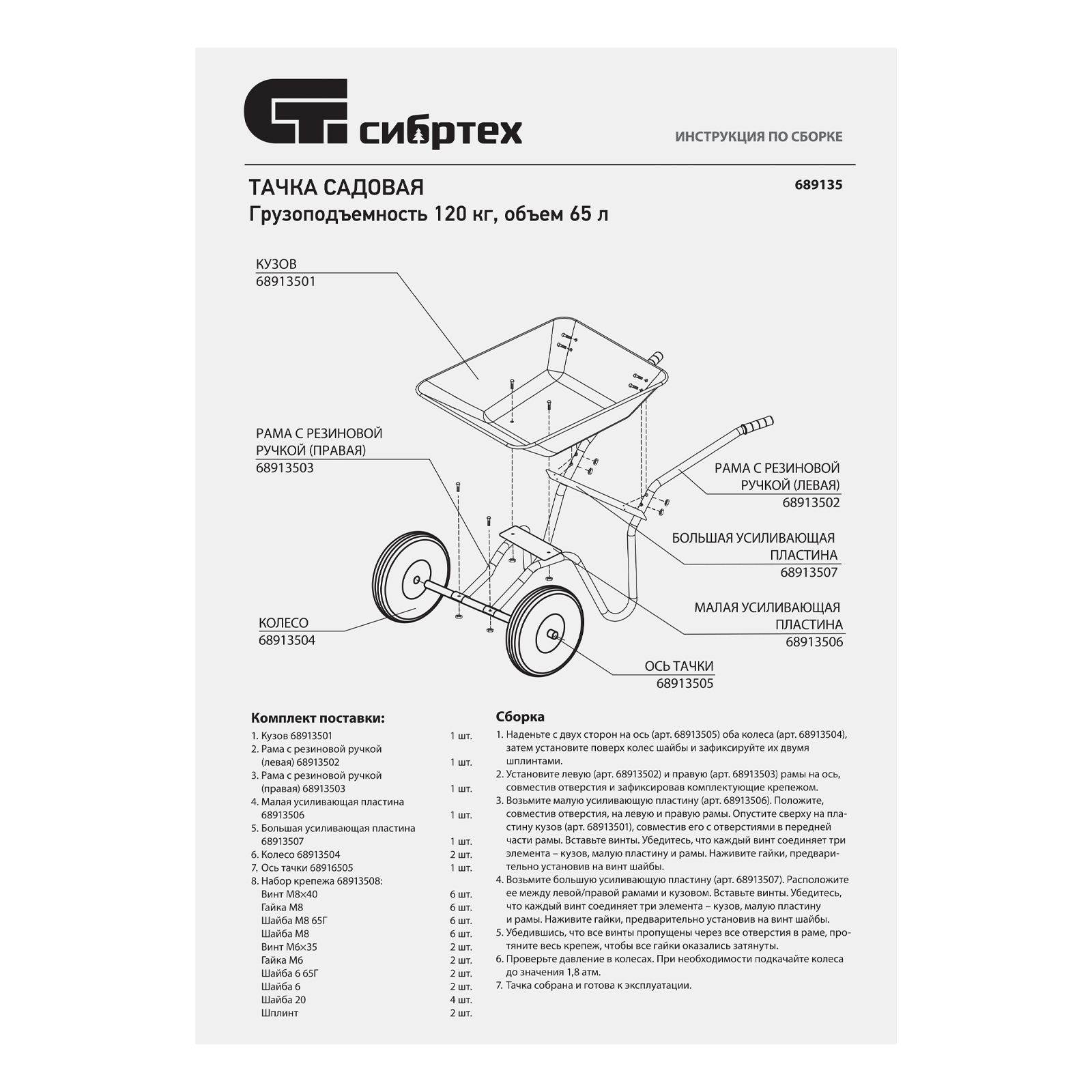 Тачка садовая, 2-х колесная, грузоподъемность 120 кг, объем 65 л Сибртех в Уфе