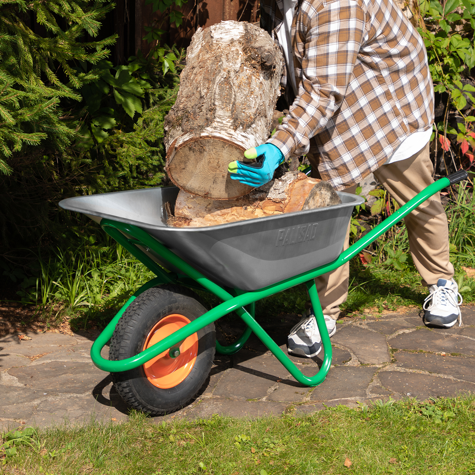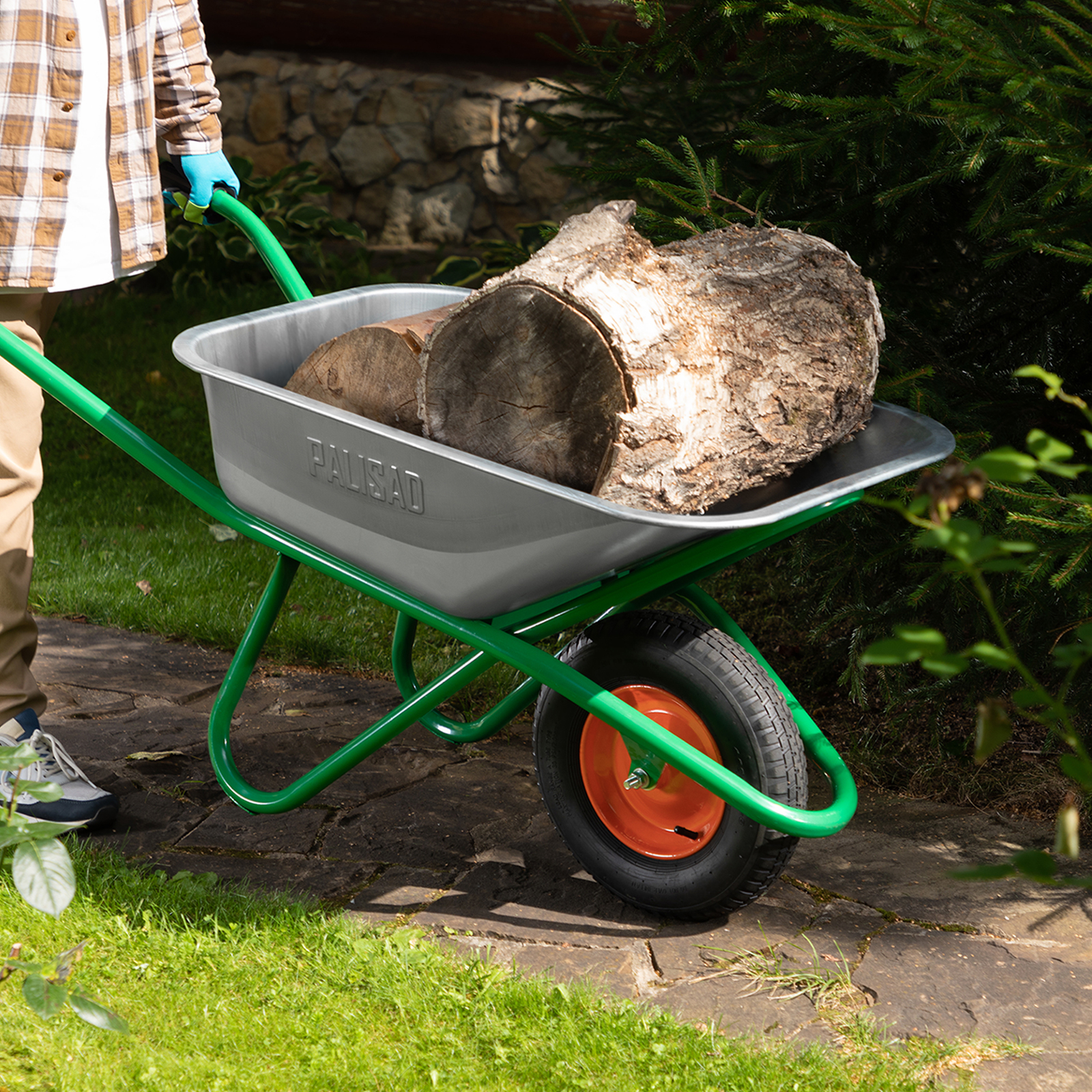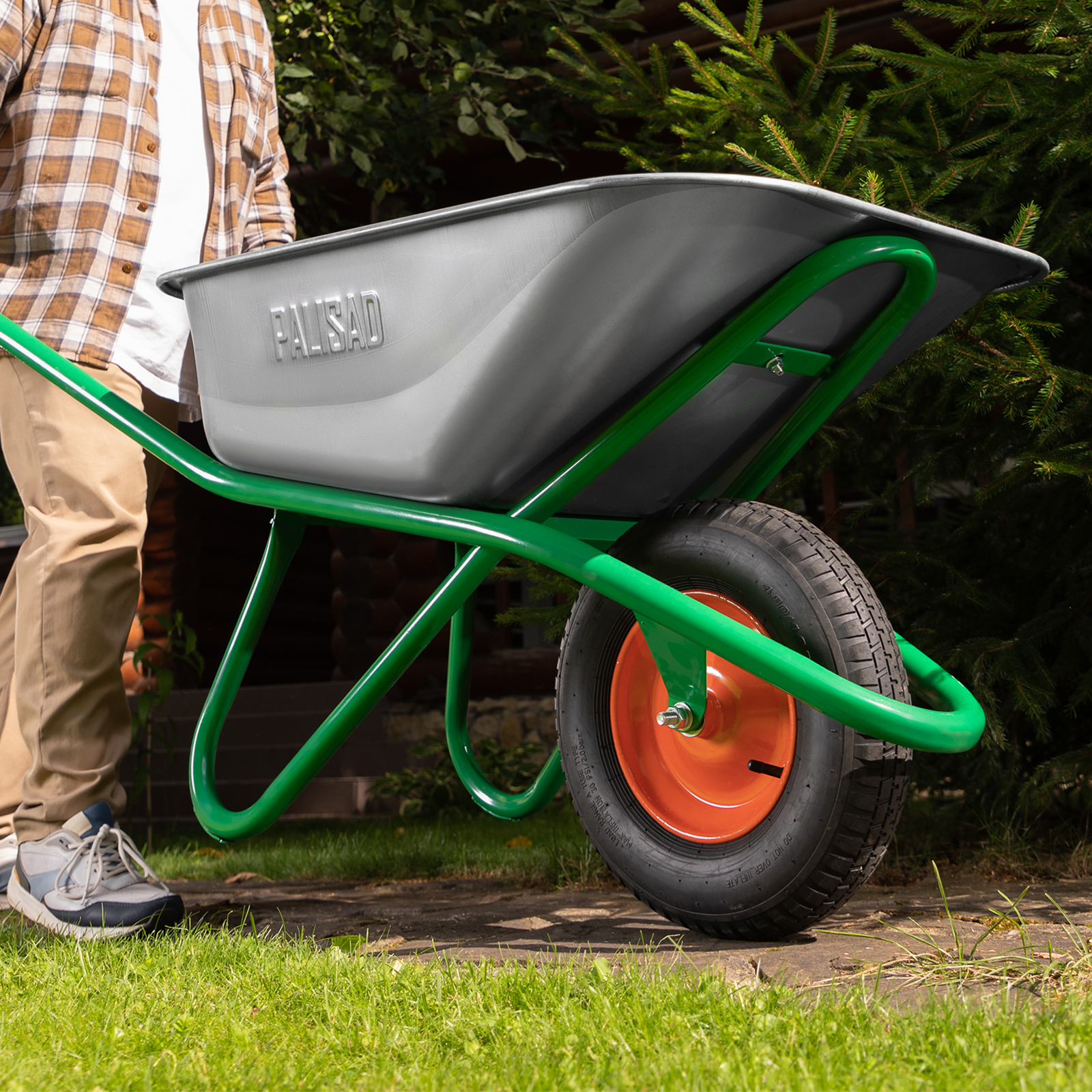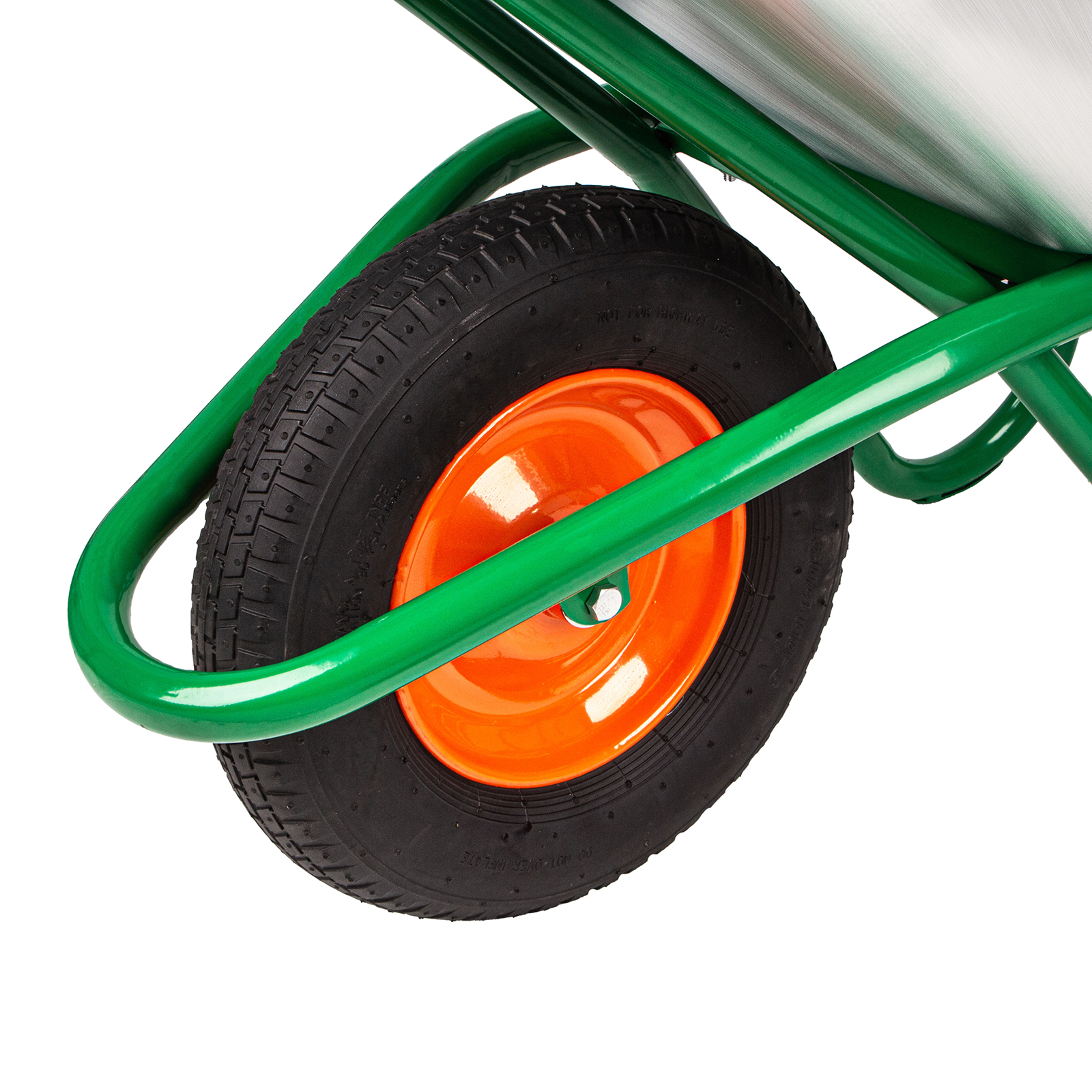 - Хорошая проходимость — колесо с 2 шарикоподшипниками легко вращается, упрощая перемещение тачки по неровной поверхности.