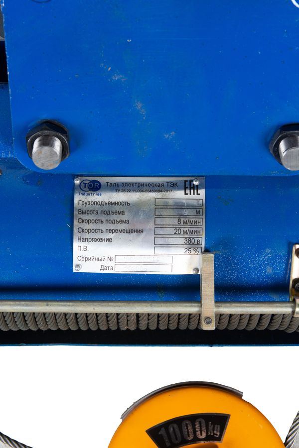 • Таль передвижная  1т  6м 380В электрическая канатная TOR CD (серия K) по ценам производителя в Уфе с доставкой по всей России