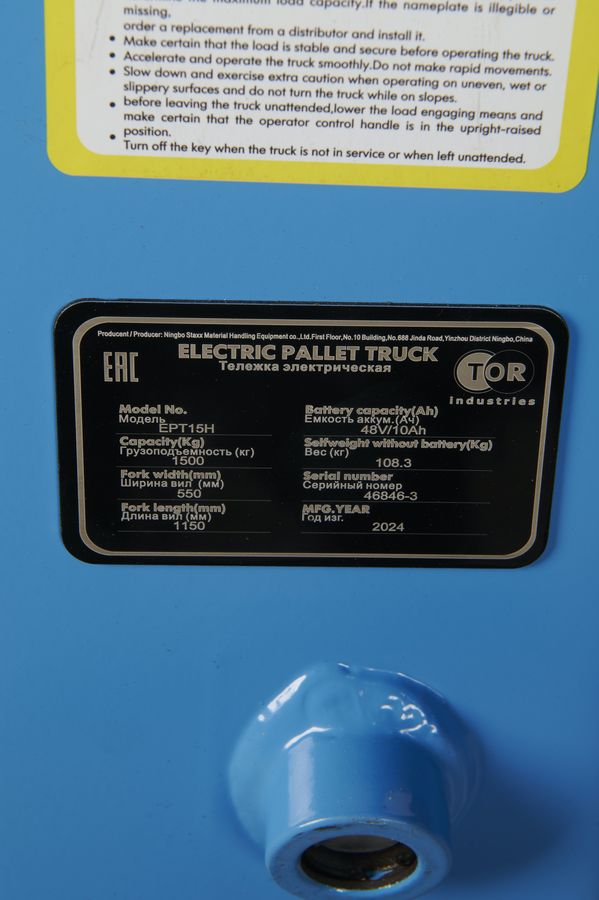 Тележка электрическая 1500 кг 1150 мм TOR EPT15H Li-pol 48/10 В/Ач в Уфе