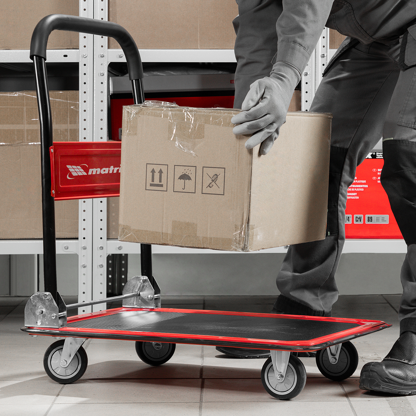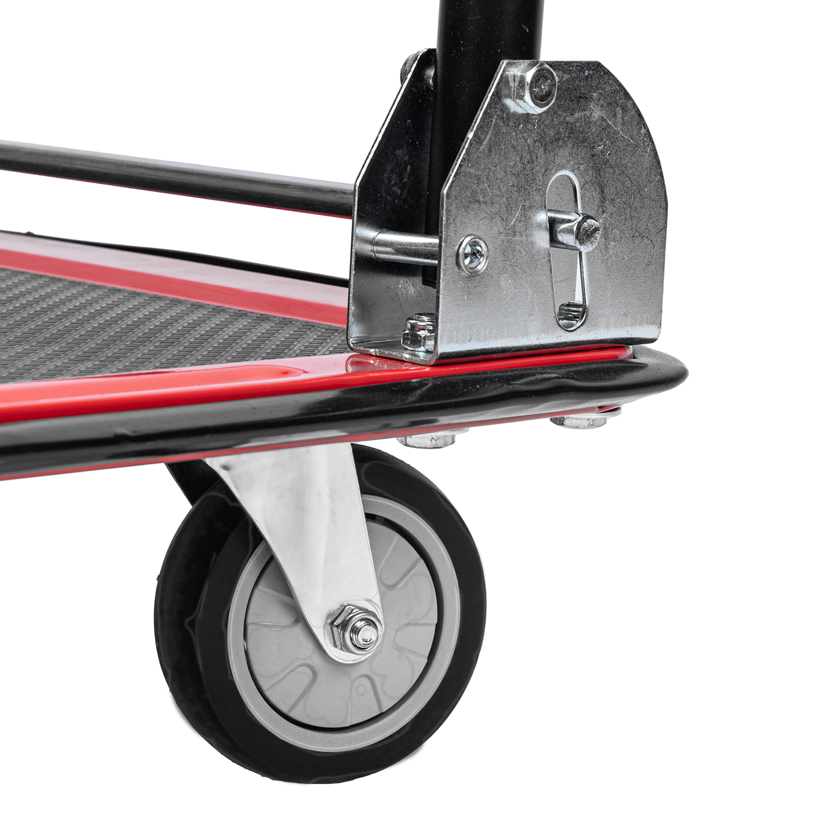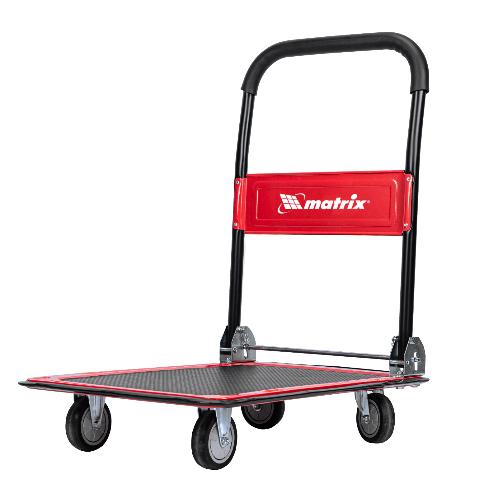 - Продуманная конструкция — противоскользящее покрытие платформы препятствует смещению груза во время транспортировки.