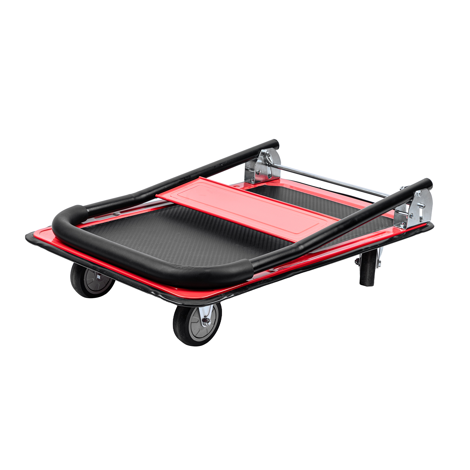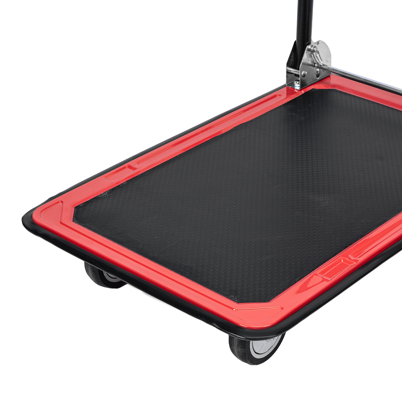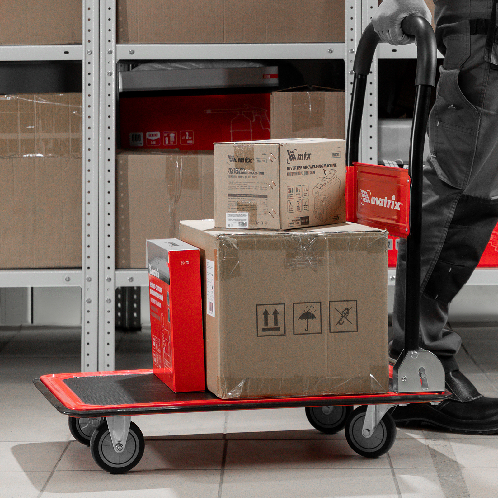 - Продуманная конструкция — противоскользящее покрытие платформы препятствует смещению груза во время транспортировки.