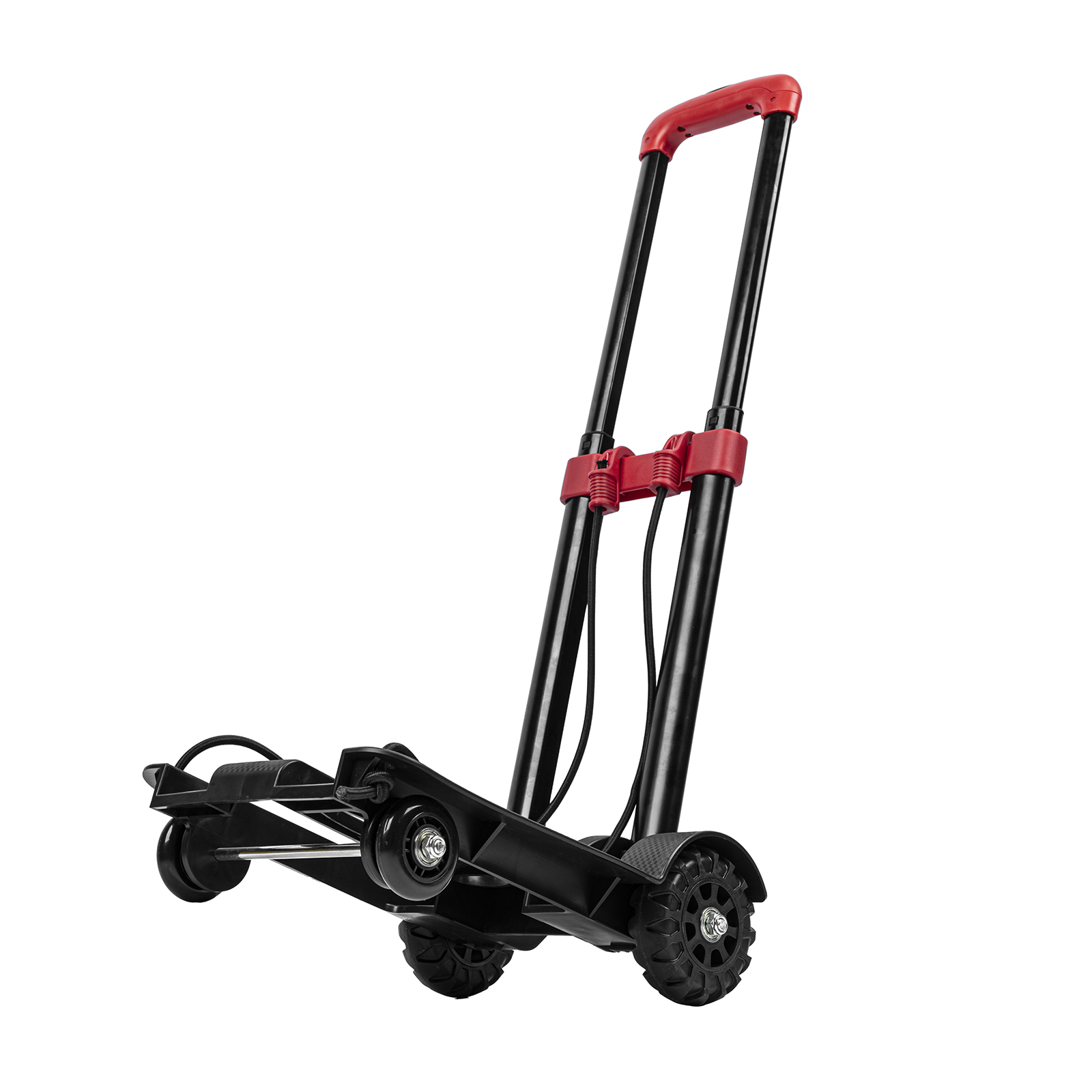 - Надежная фиксация груза — крепкие багажные резинки удерживают его на платформе.