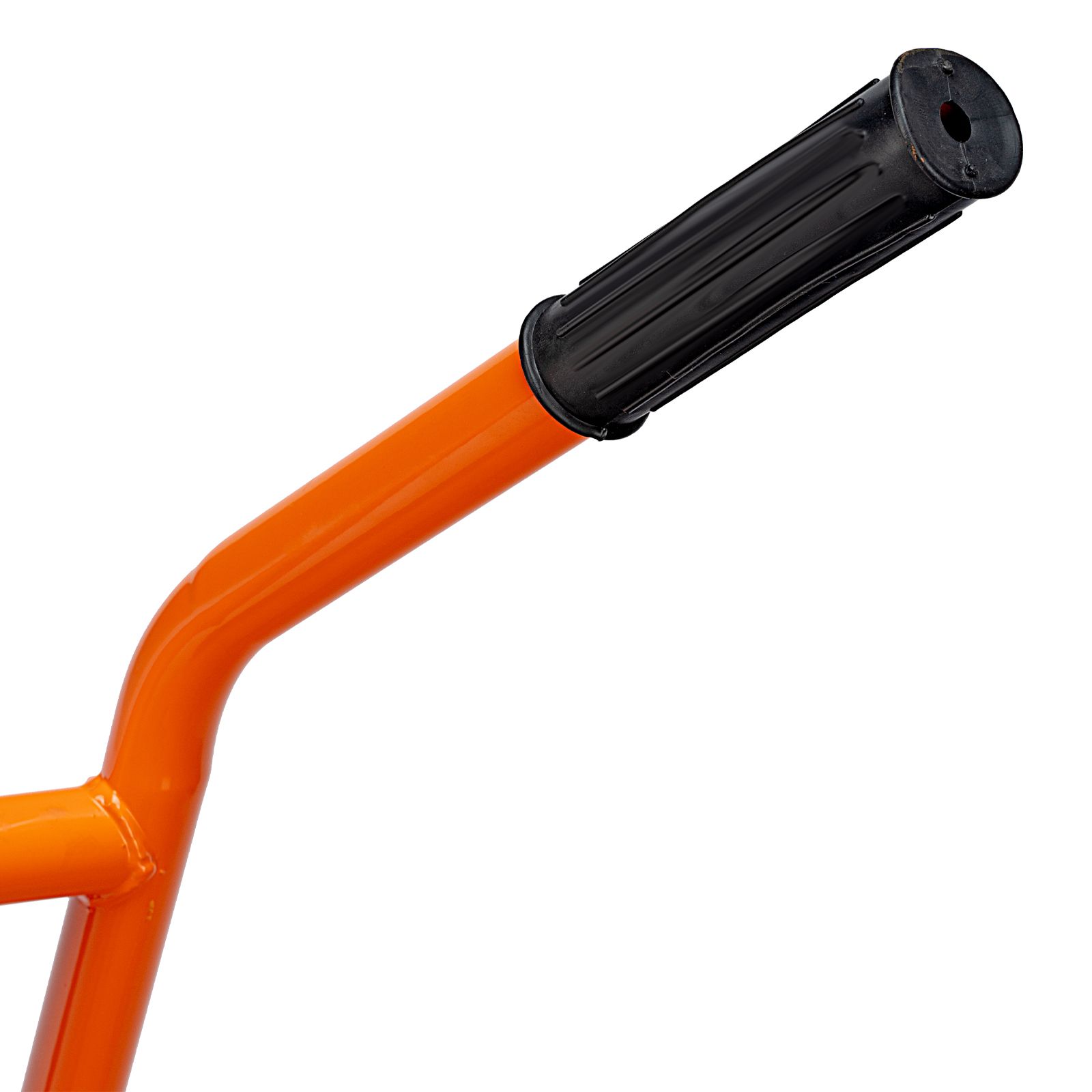 - Удобная транспортировка груза — пневматические колеса с камерами, резиновыми шинами и 2 шарикоподшипниками в каждом гасят вибрации и обеспечивают плавный ход.