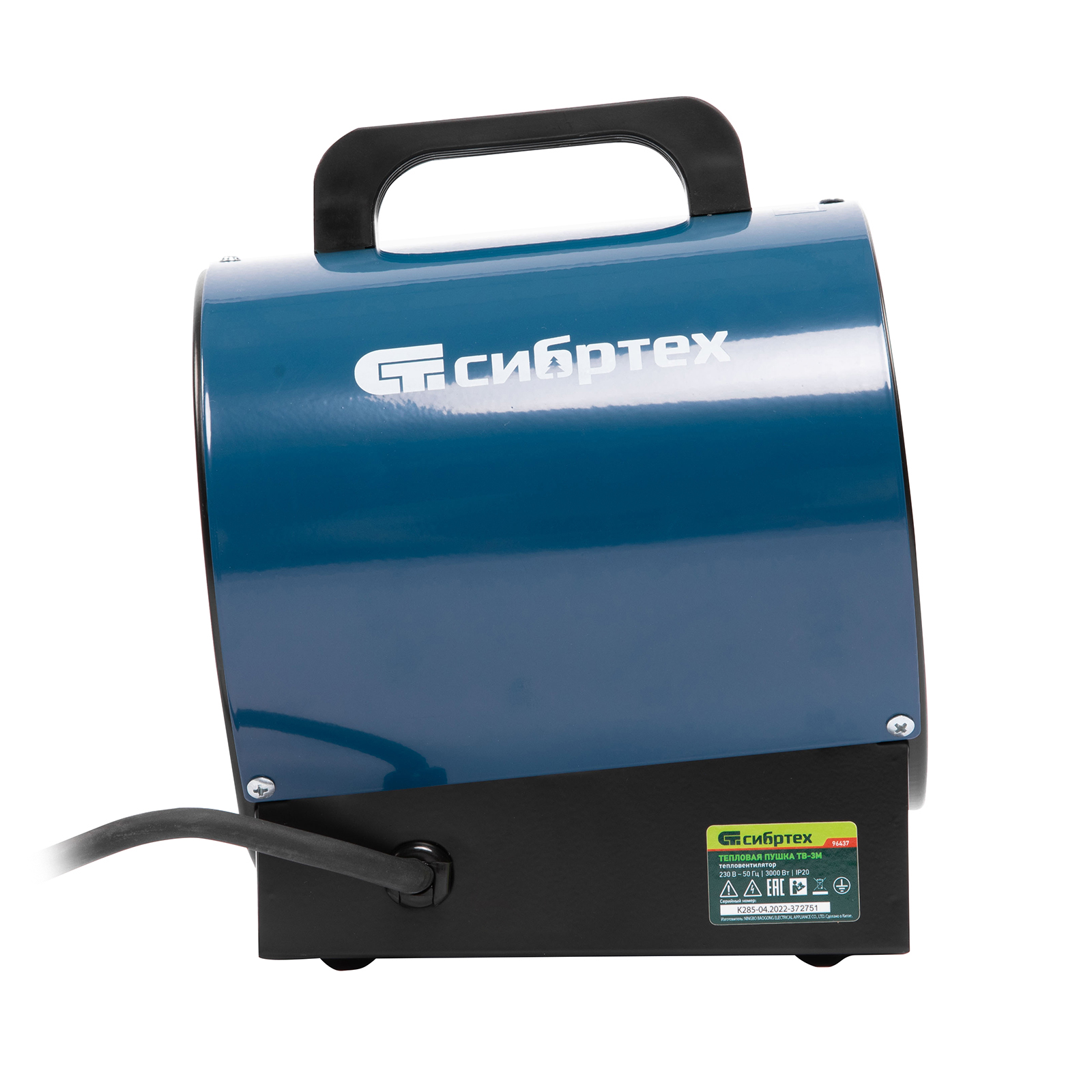 Тепловая пушка ТВ-3М (тепловентилятор), 230 В, 3 режима: вентилятор/1500 Вт /3000 Вт Сибртех
