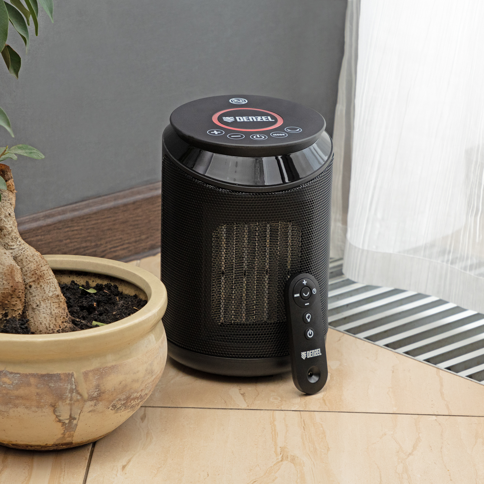 Тепловентилятор керамический DTFC-2000X, 2 кВт, wi-fi, пульт, динамик, вращение, 3 реж. Denzel