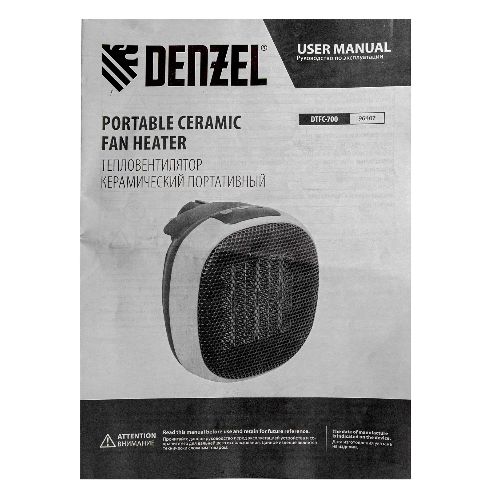 Тепловентилятор портативный керамический DTFC-700, 3 реж. вентилятор, нагрев 700 Вт Denzel