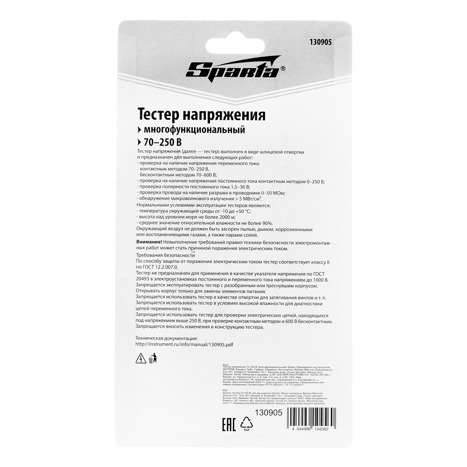 Тестер напряжения 70-250 В многофункциональный Sparta в Уфе