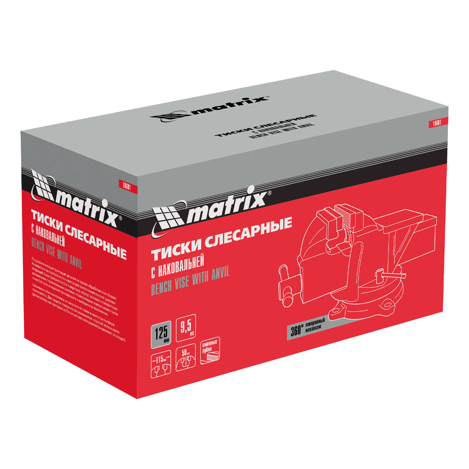Тиски слесарные, 125 мм, поворотные, с наковальней Matrix в Уфе