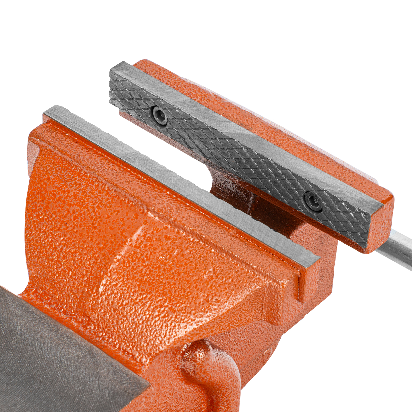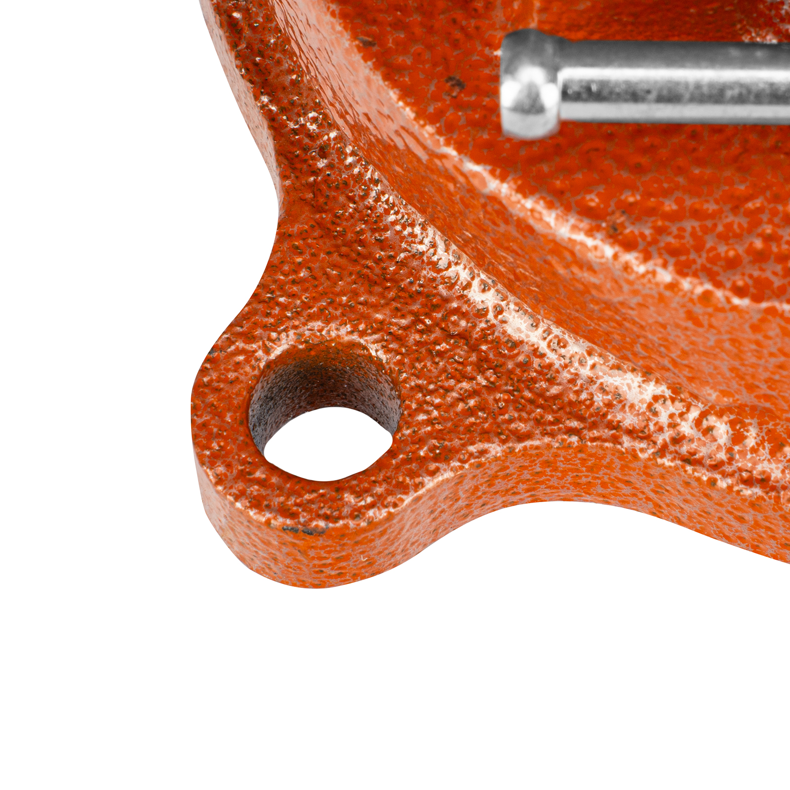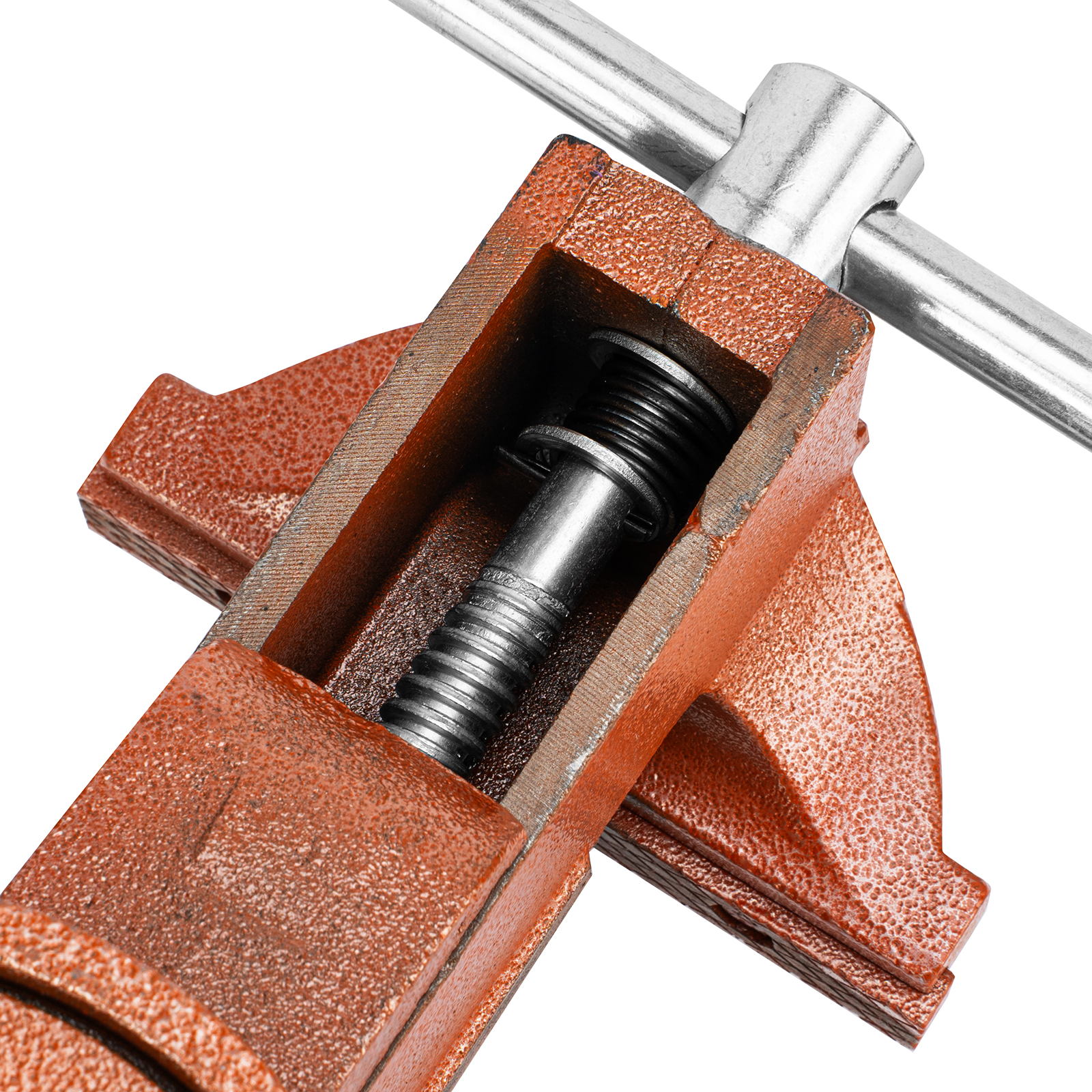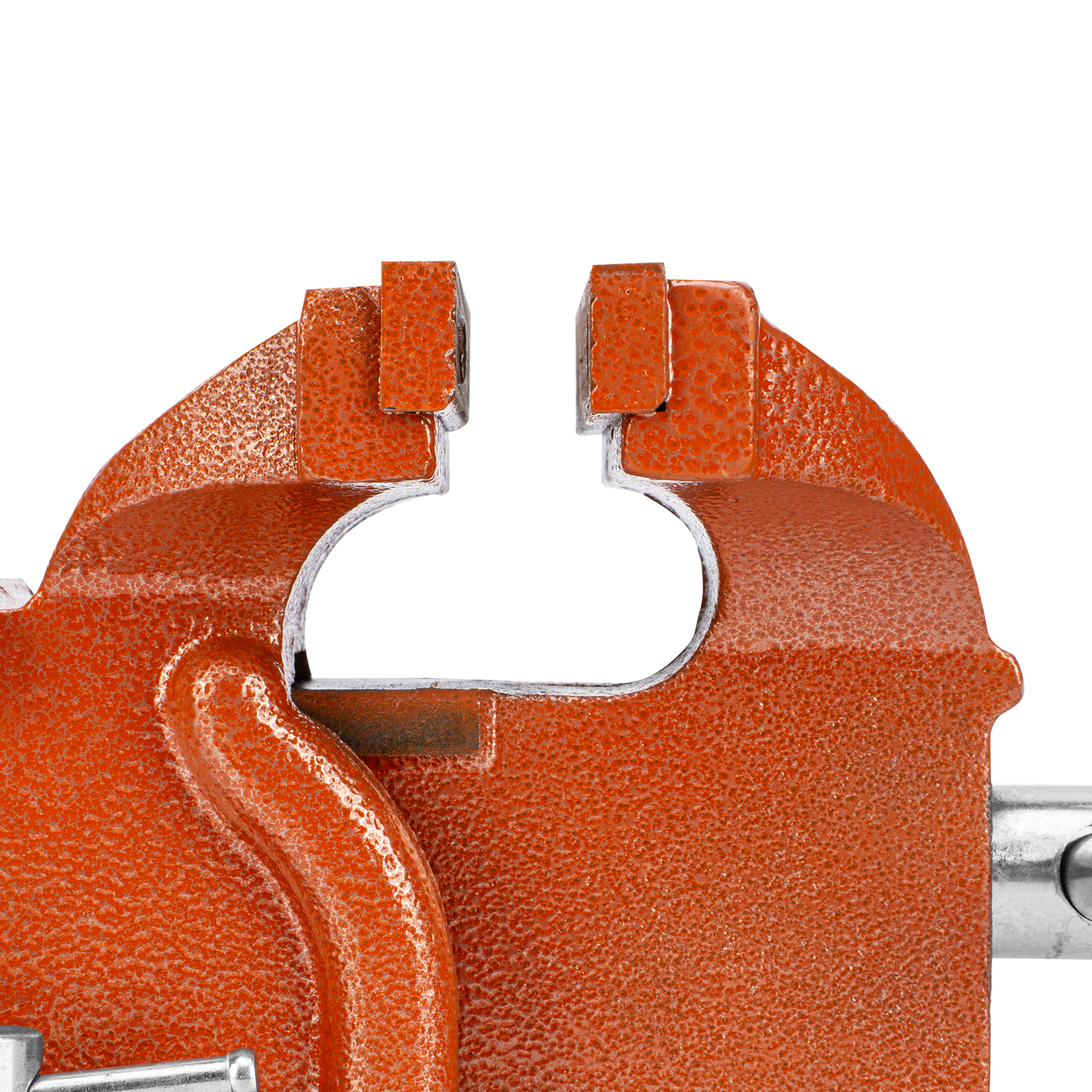 - Корпус тисков выполнен из чугуна, а губки — из стали, благодаря чему достигается высокая прочность инструмента.