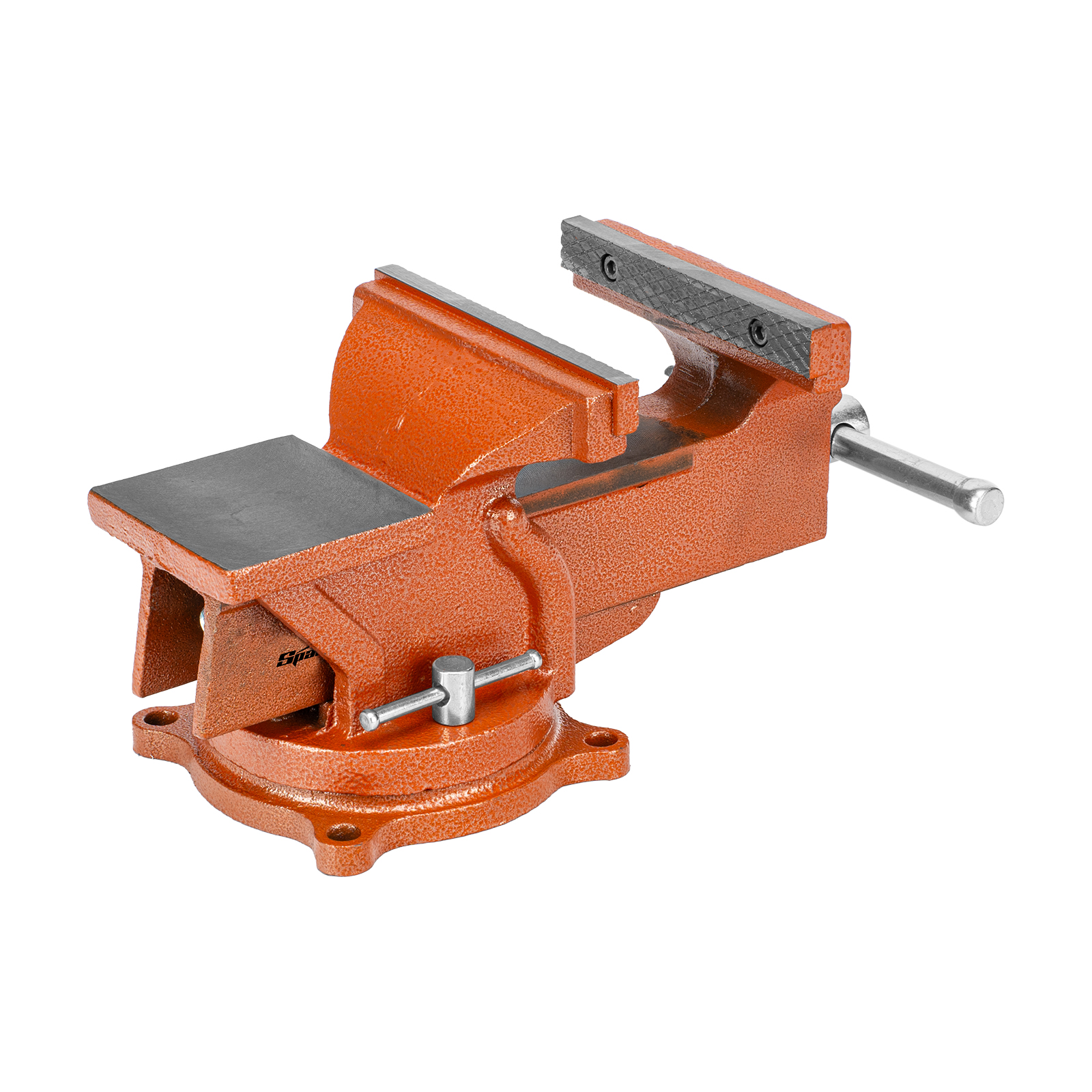 Поворотные слесарные тиски Sparta 186275 с наковальней, ширина губок 150 мм, — это небольшой инструмент для захвата деталей до 125 мм. Будут полезны в частной мастерской или гараже для удобства обработки крупногабаритных заготовок.
