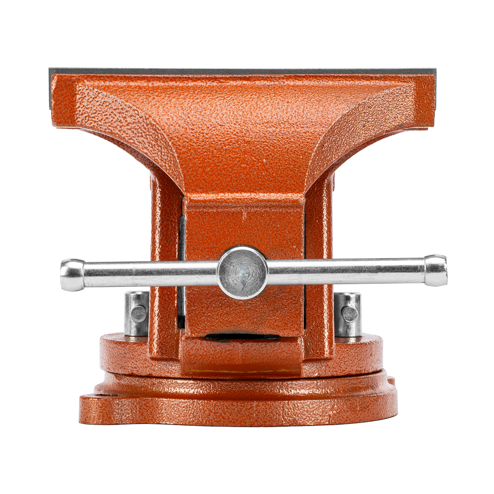 - Корпус тисков выполнен из чугуна, а губки — из стали, благодаря чему достигается высокая прочность инструмента.