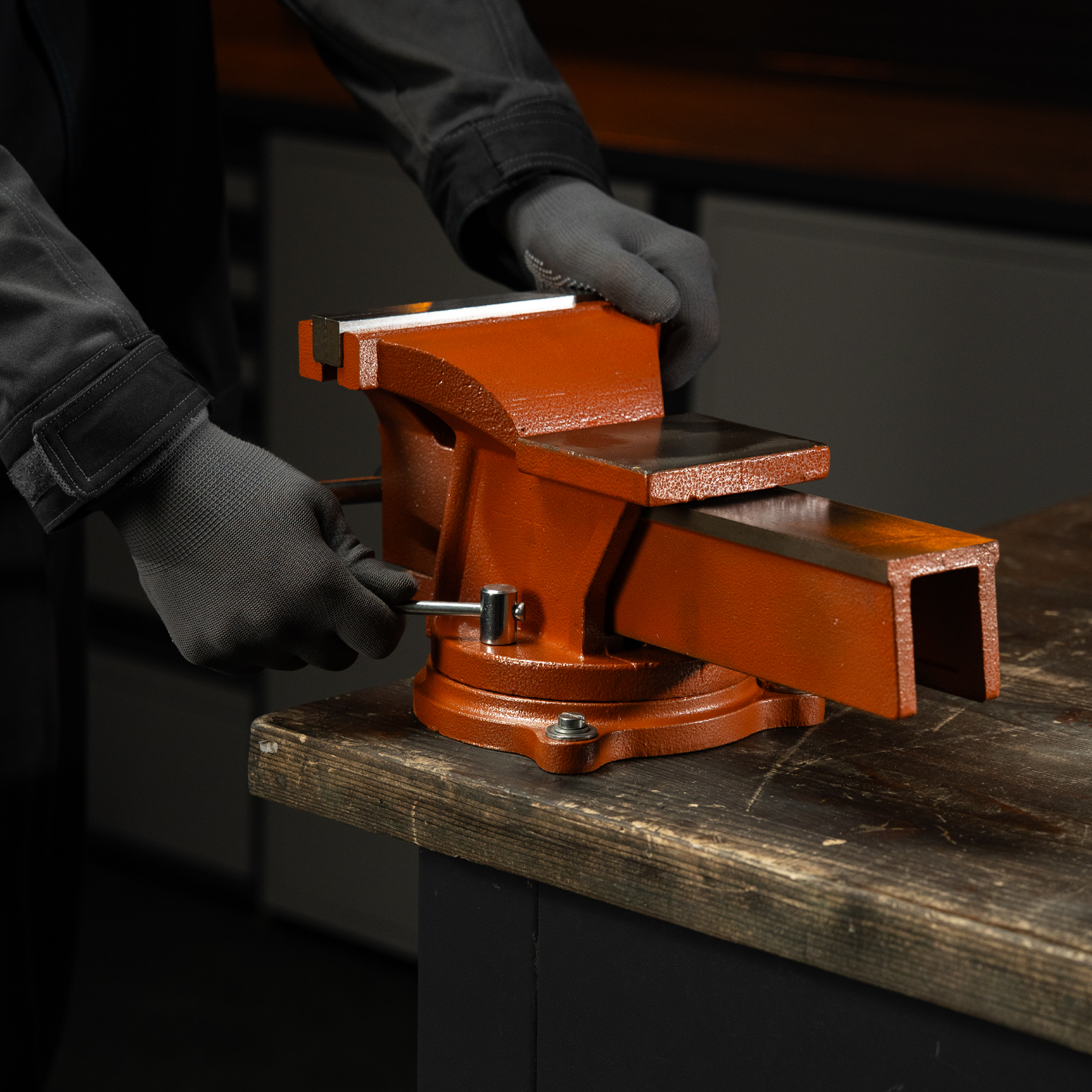 - Поворотные тиски позволяют менять положение заготовки для удобства ее обработки.