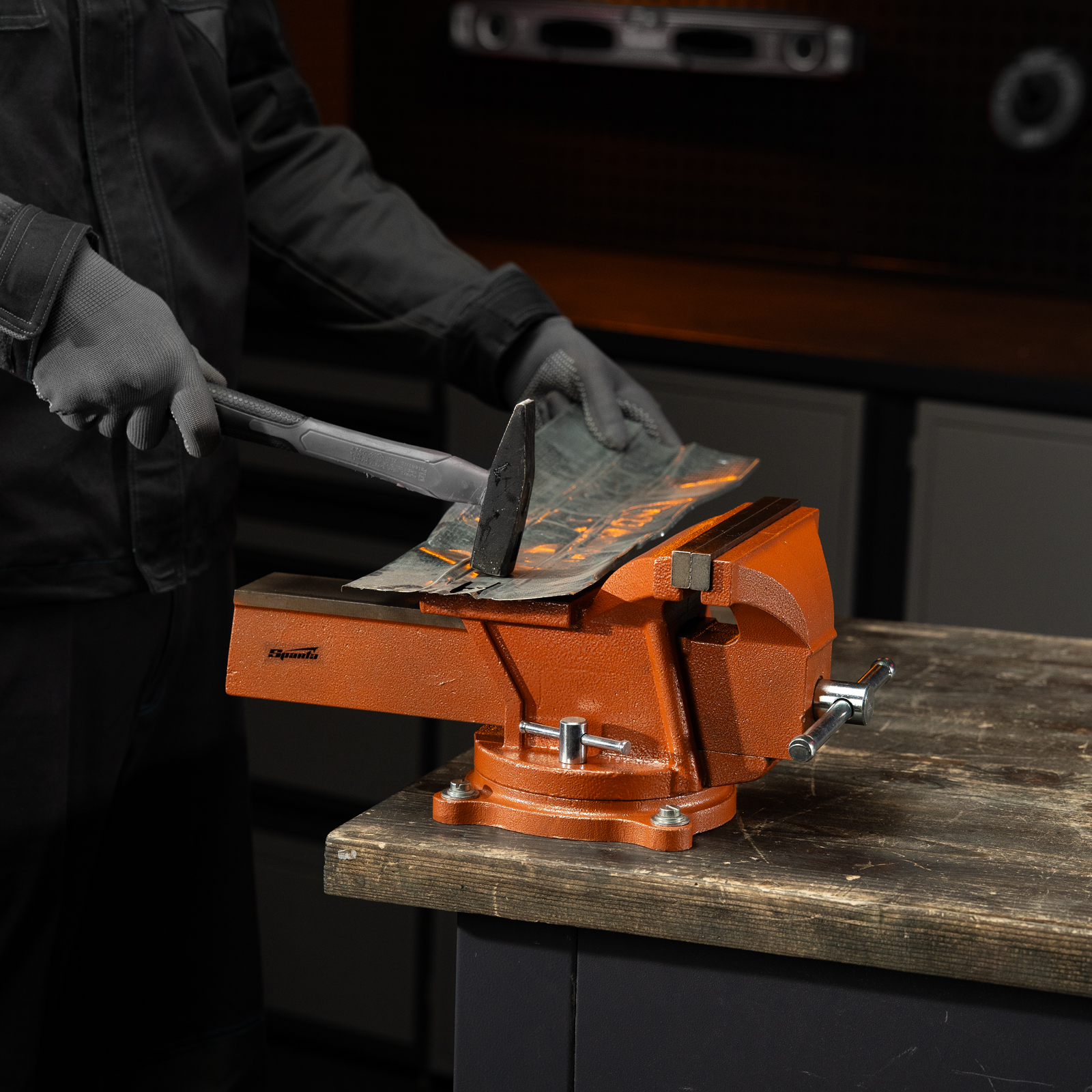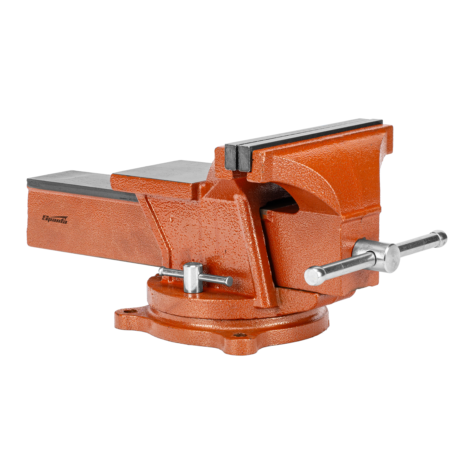 Поворотные слесарные тиски Sparta 186295 с наковальней, ширина губок 200 мм, — это небольшой инструмент для захвата деталей до 150 мм. Будут полезны в частной мастерской или гараже для удобства обработки крупногабаритных заготовок.