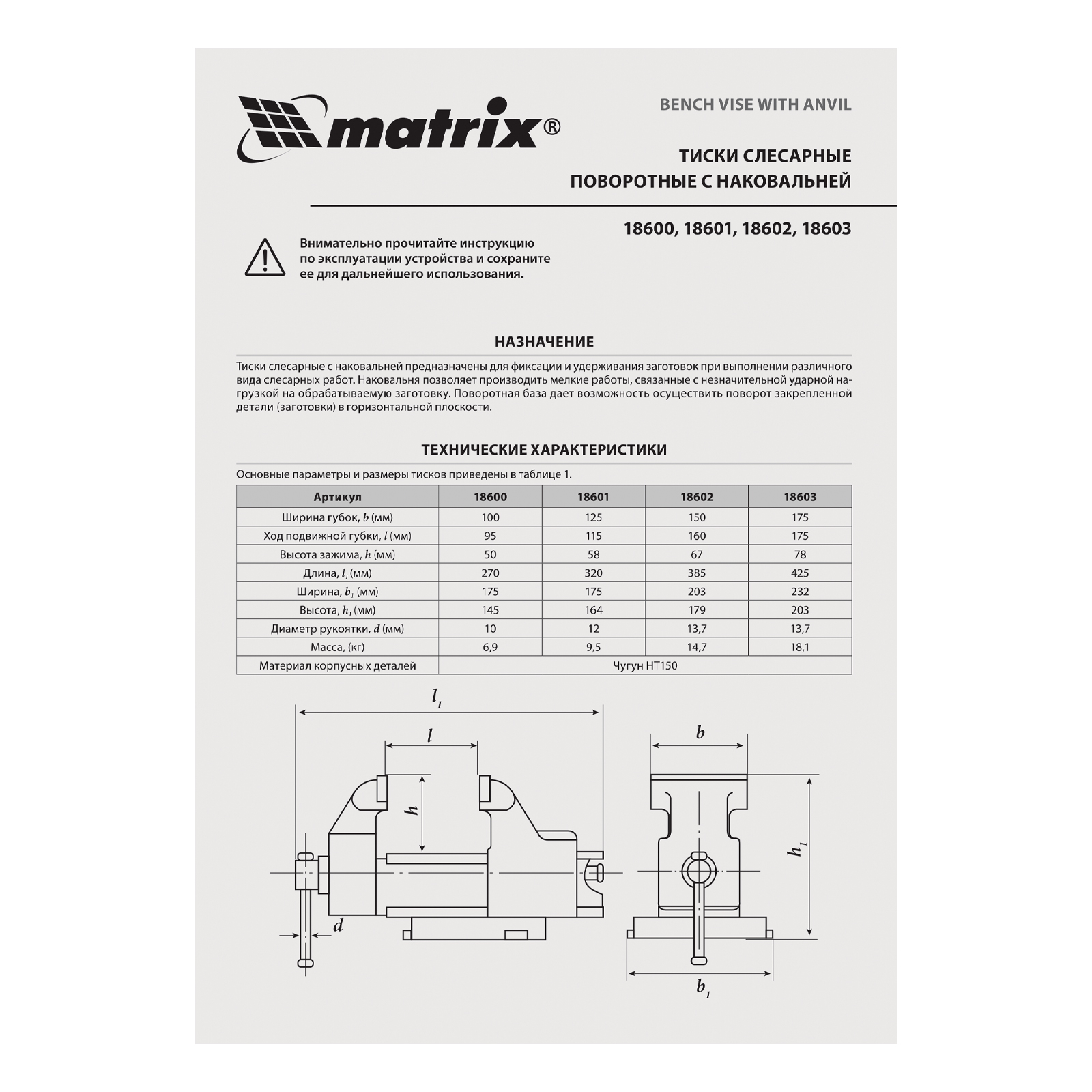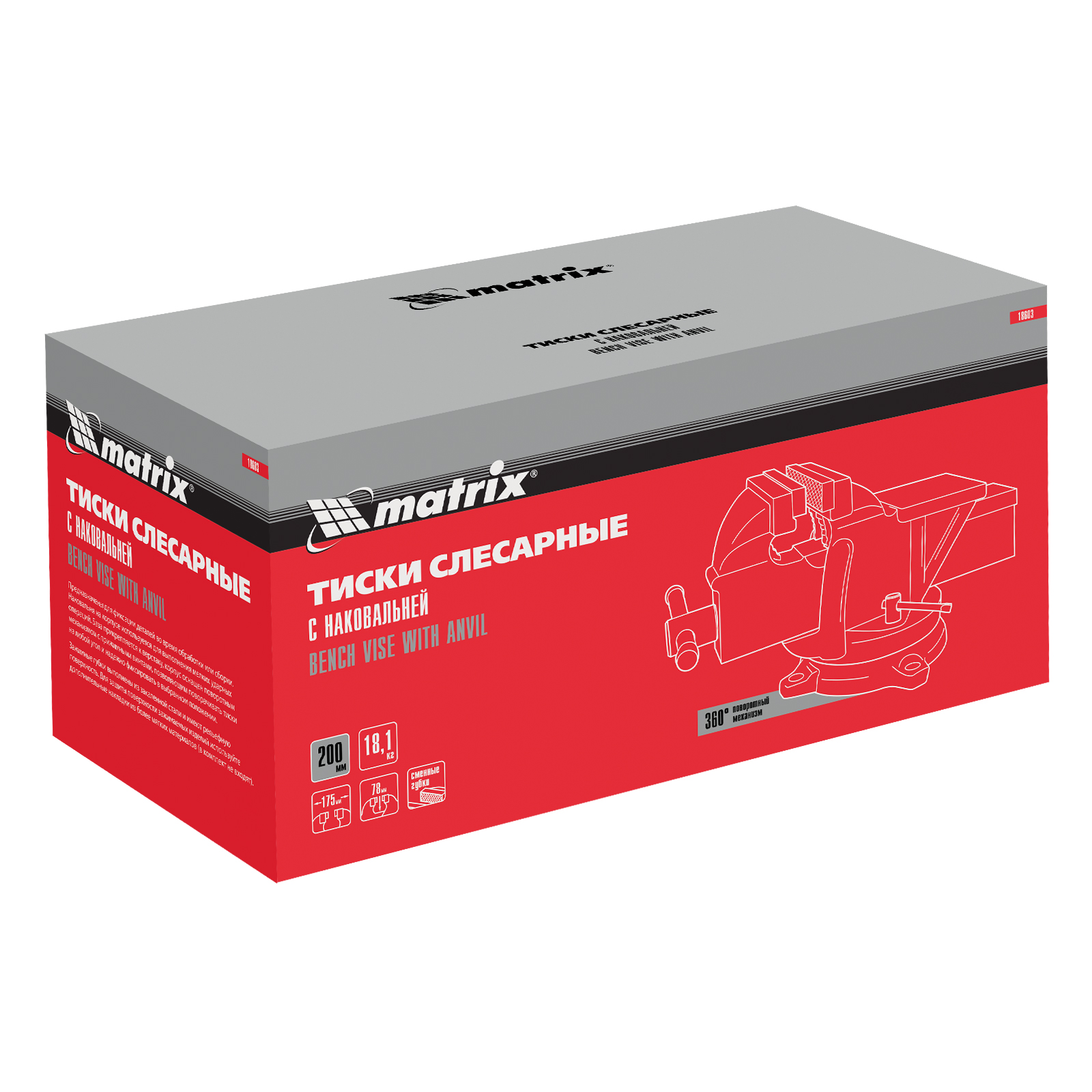 Тиски слесарные, 200 мм, поворотные, с наковальней Matrix в Уфе