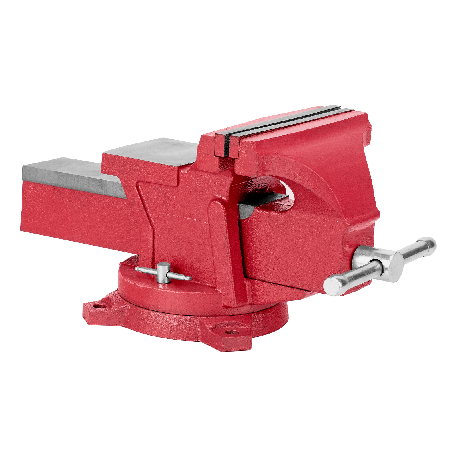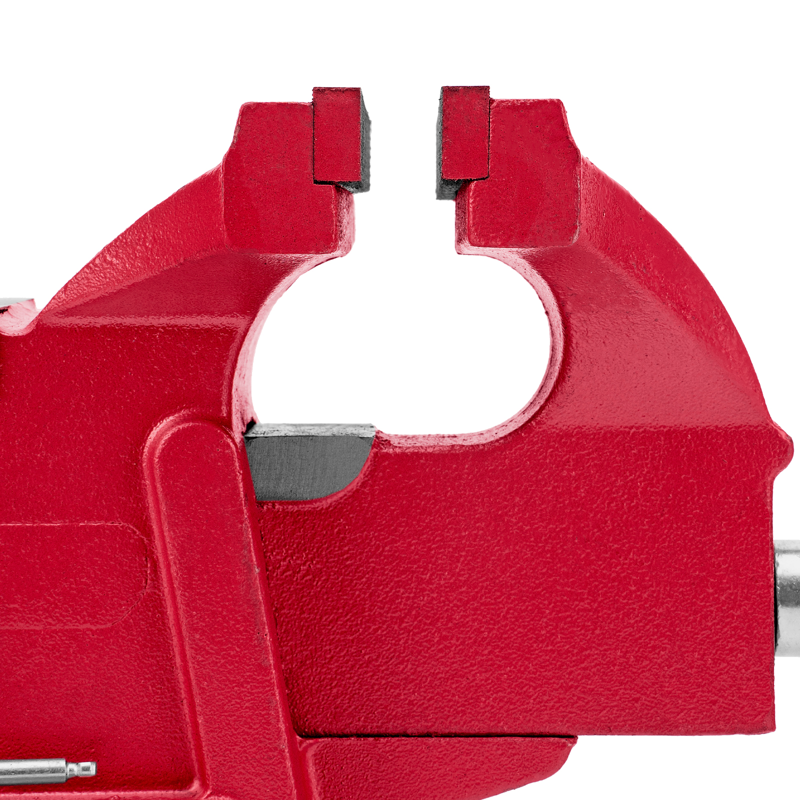 Поворотные слесарные тиски Matrix 18603 с наковальней и губками шириной 200 мм имеют рабочий ход 175 мм и предназначены для захвата и фиксации различных деталей. Поворотный механизм с прижимными винтами позволяет вращать тиски на 360° и фиксировать их в выбранном положении для удобной обработки заготовок с разных сторон. Инструмент используется для шлифовки, сверления и проведения других работ. Будет полезен в мастерской и гараже.