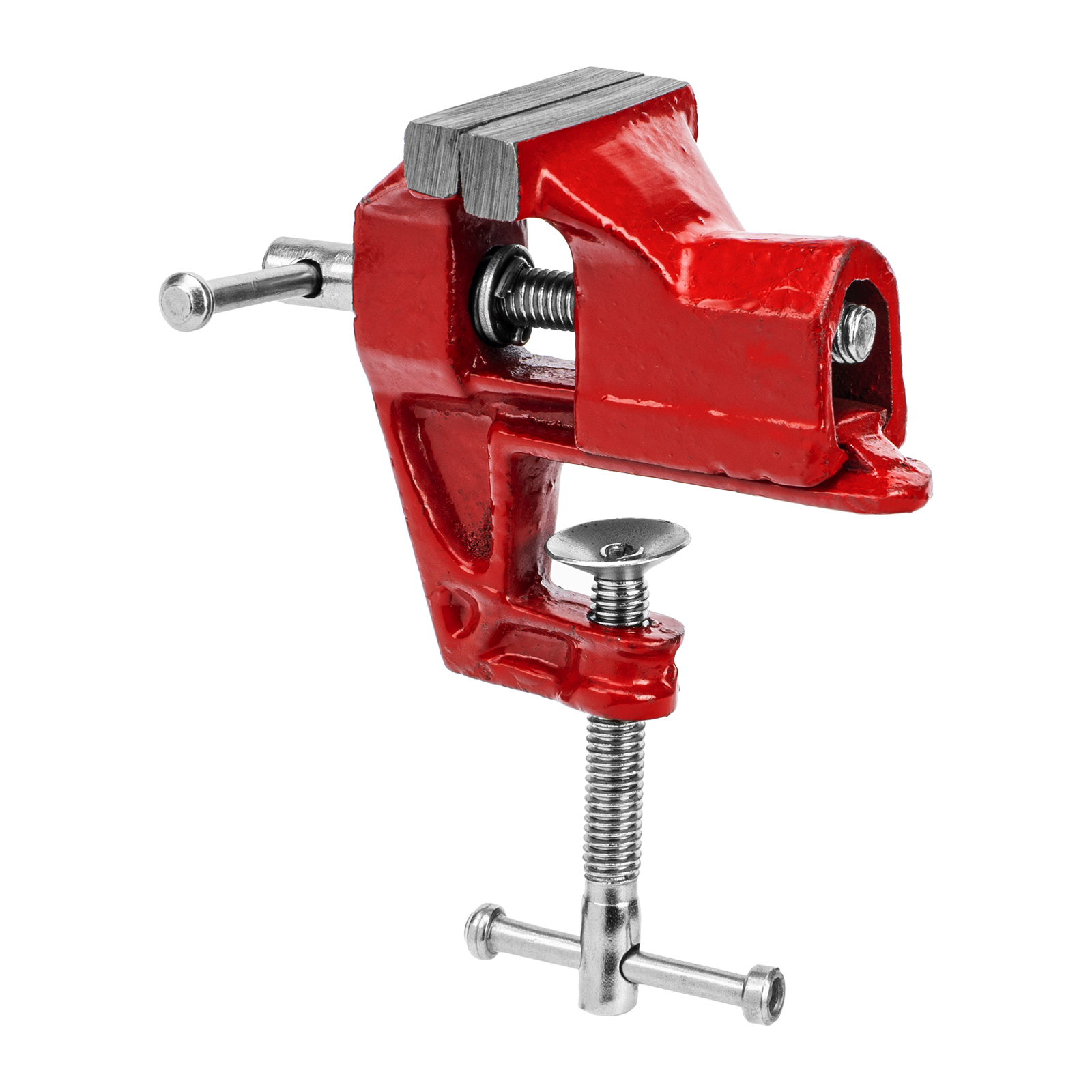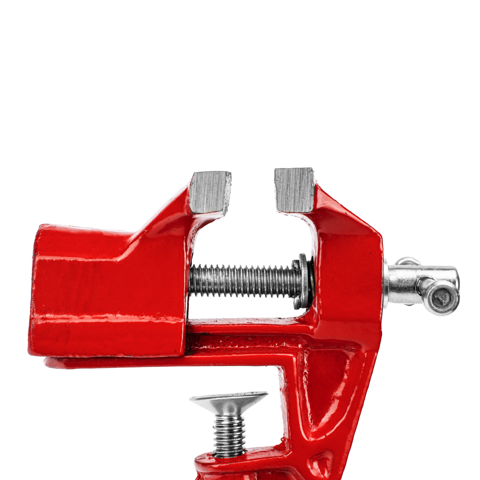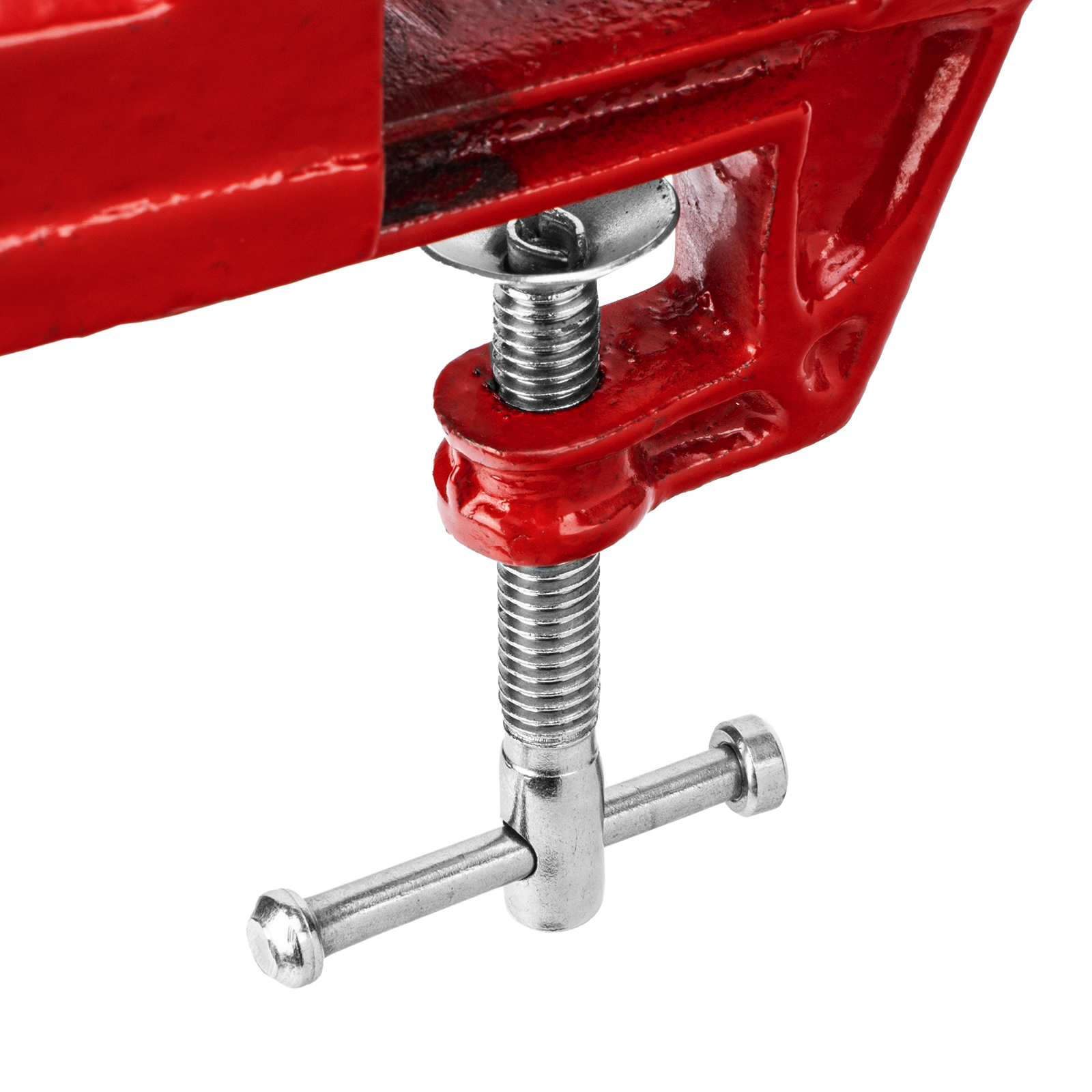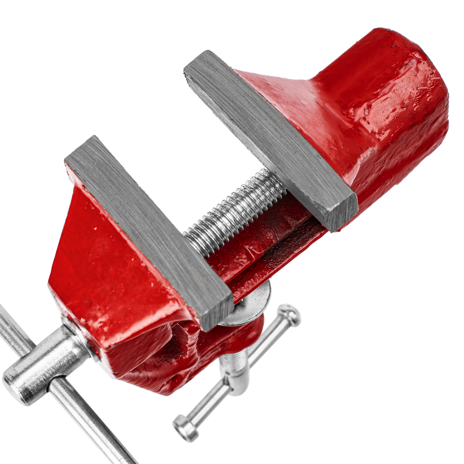 - Простое использование — винтовой зажимной механизм позволяет легко устанавливать и снимать тиски с рабочего стола.
