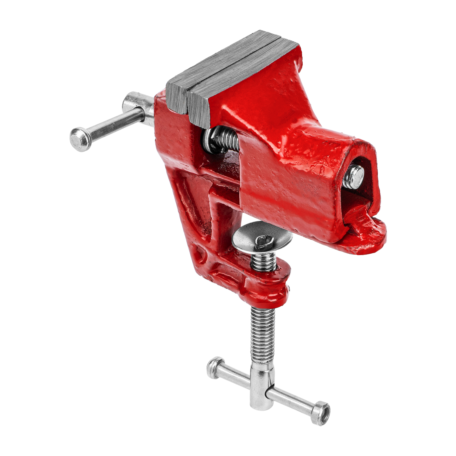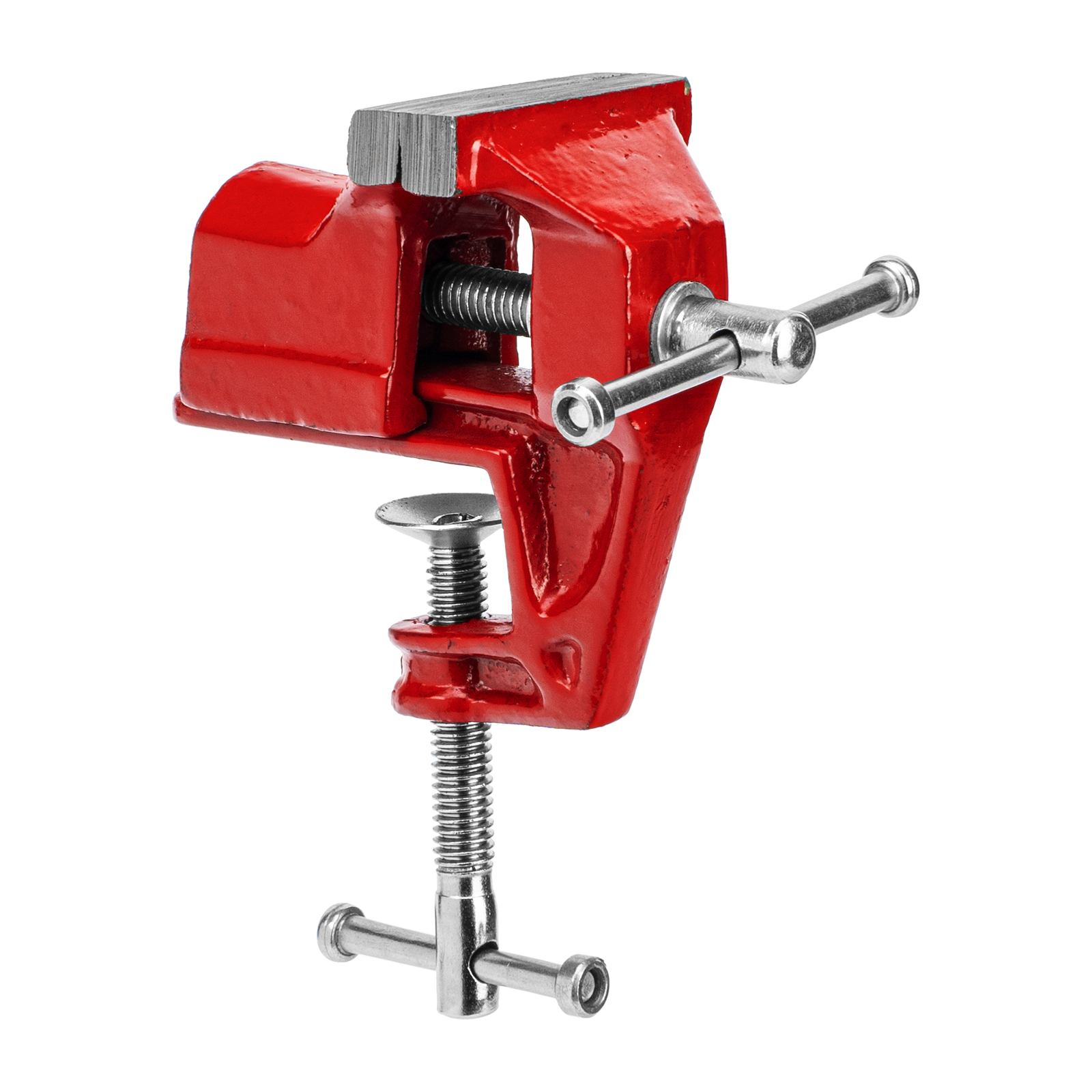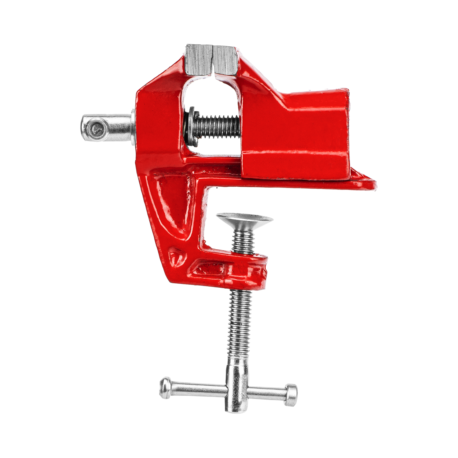 - Простое использование — винтовой зажимной механизм позволяет легко устанавливать и снимать тиски с рабочего стола.