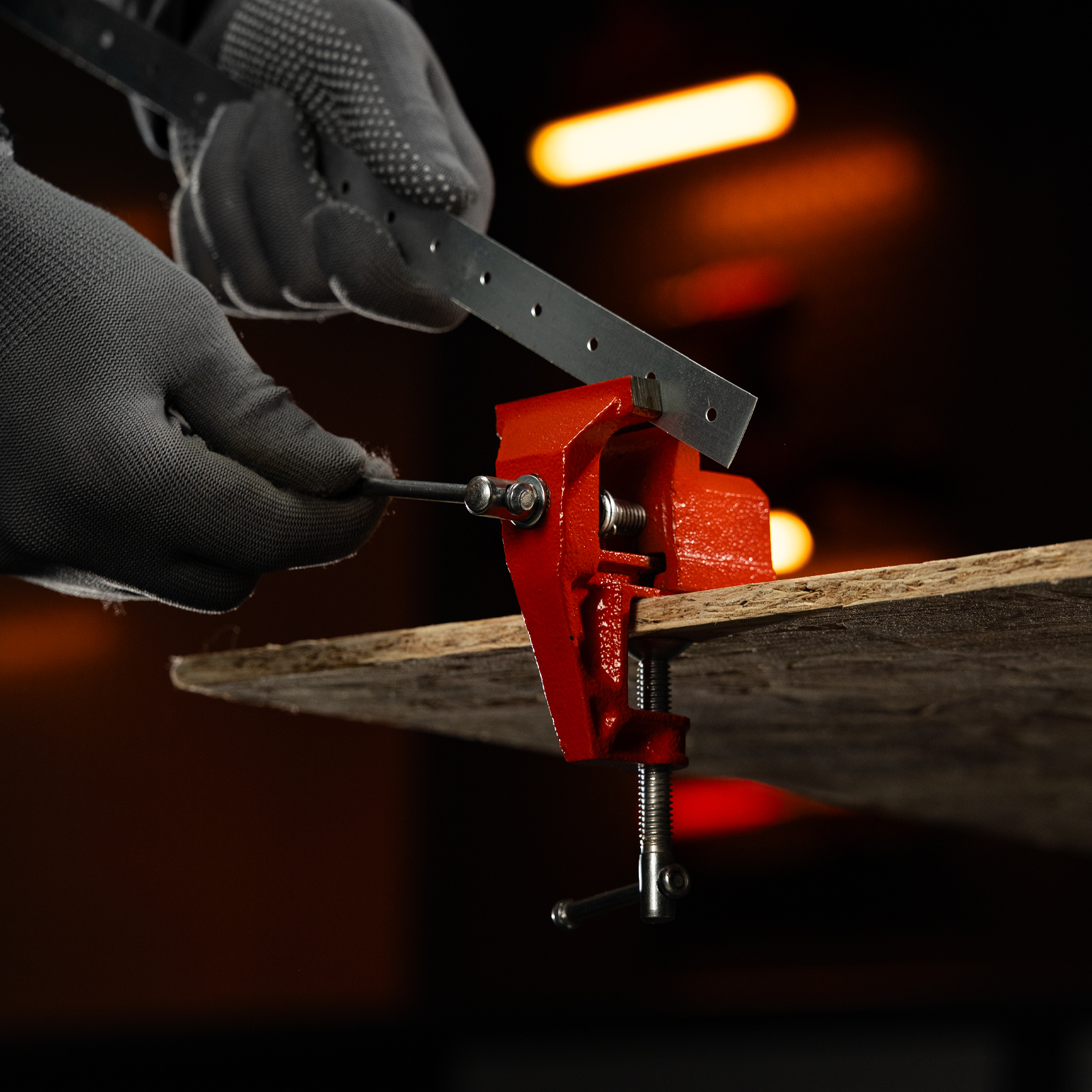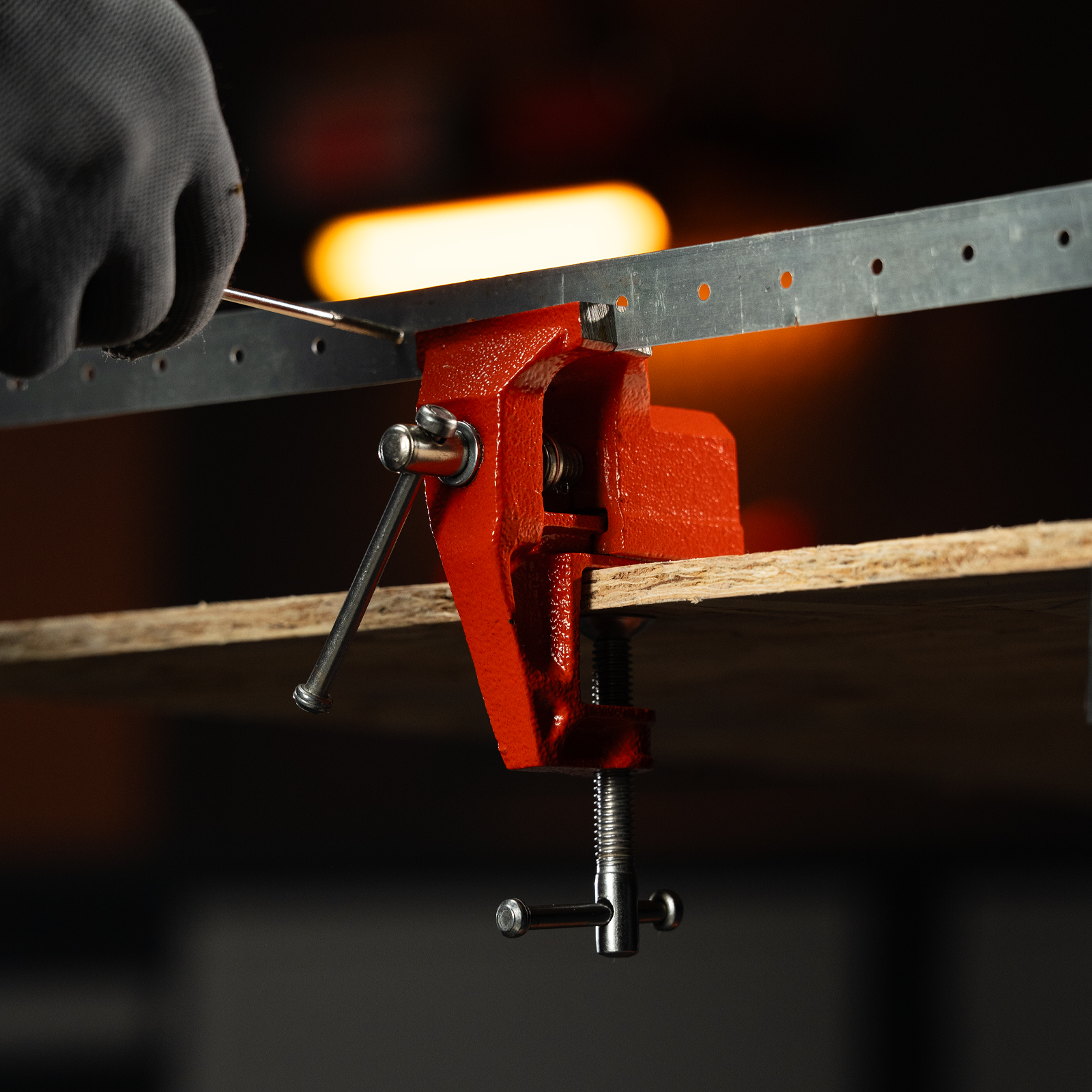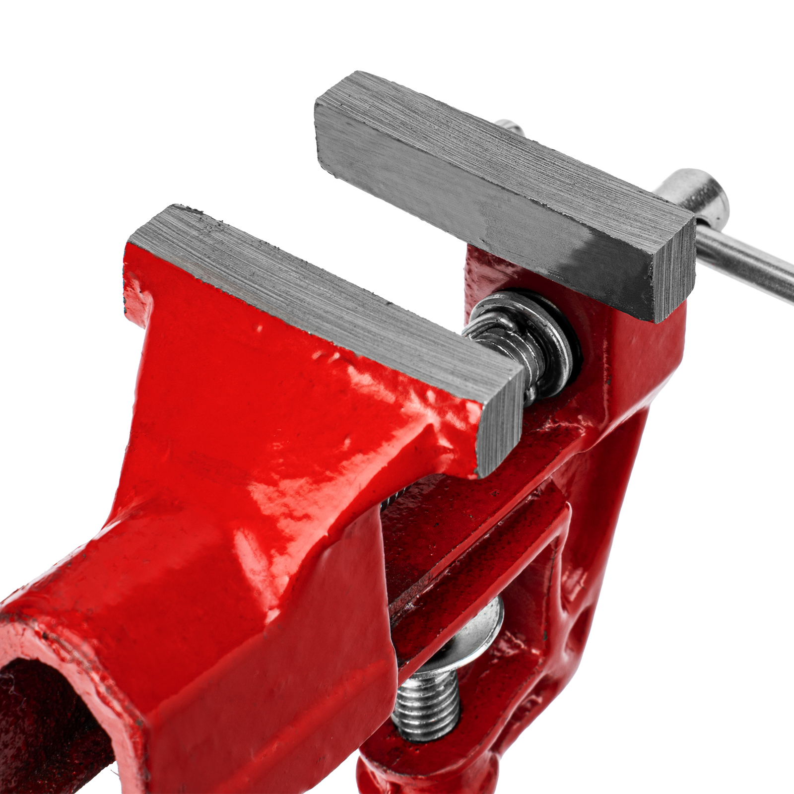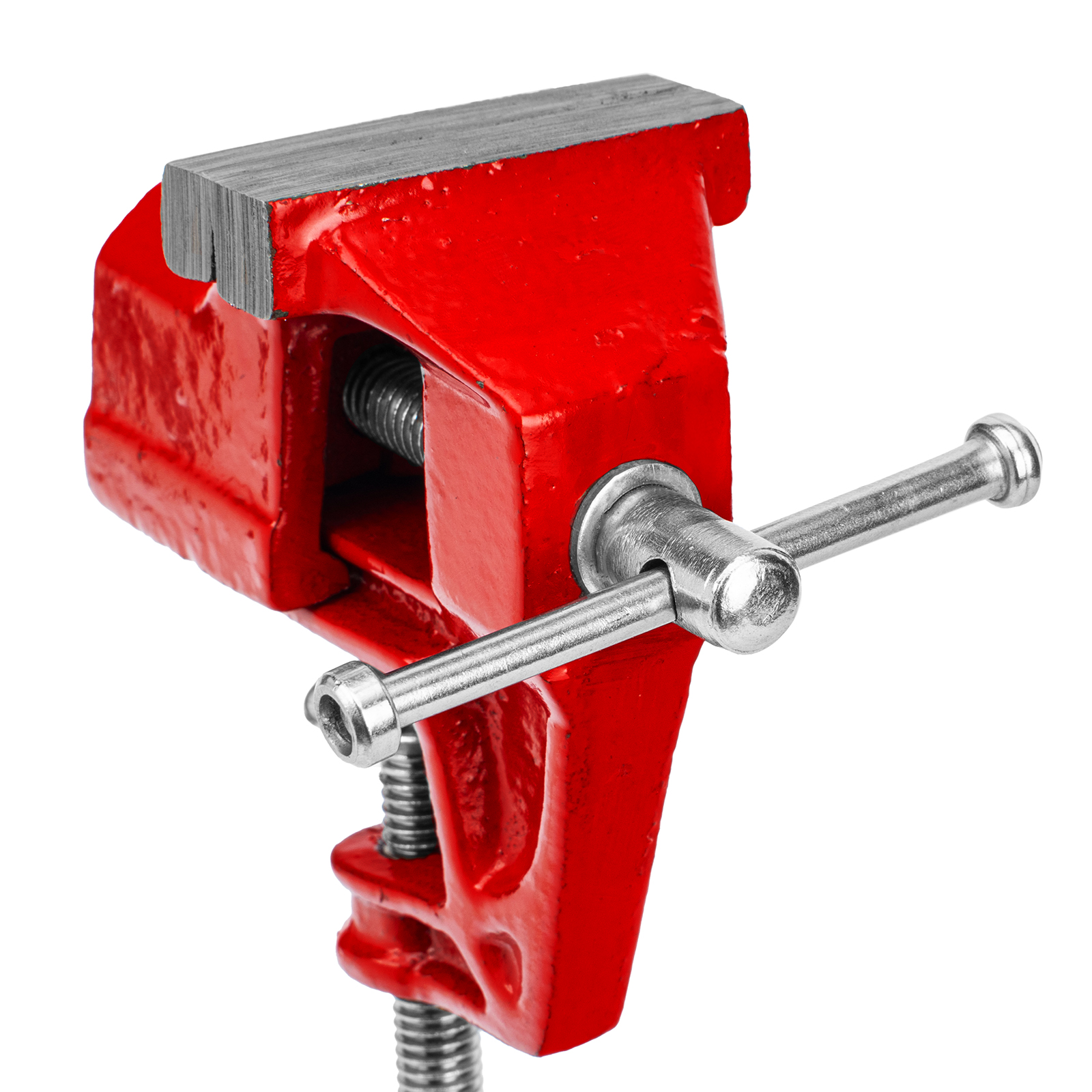 - Простое использование — винтовой зажимной механизм позволяет легко устанавливать и снимать тиски с рабочего стола.