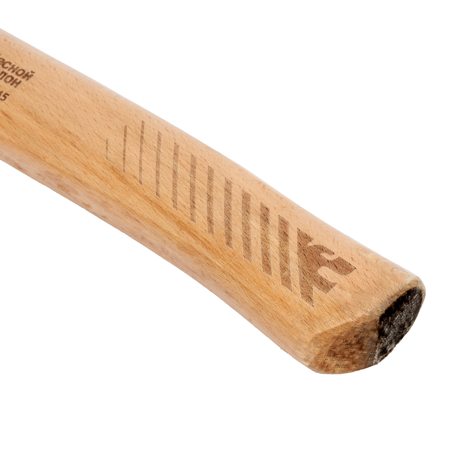 - Прочность — топорище изготовлено из бука и покрыто защитным лаком.