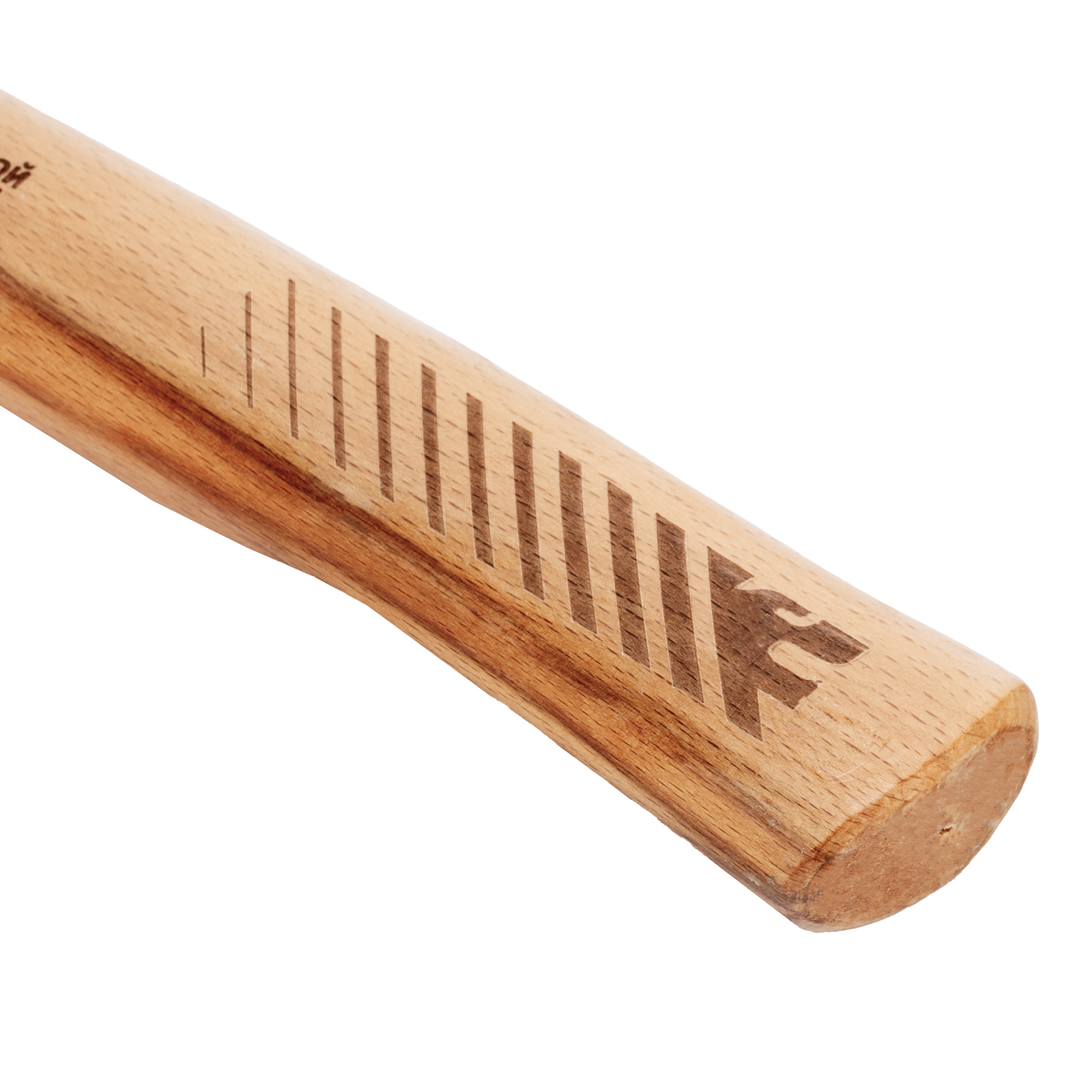 - Прочность — топорище изготовлено из бука и покрыто защитным лаком.