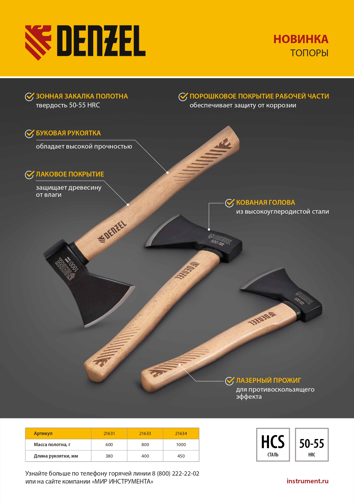 - Стойкость к рассыханию и воздействию влаги — топорище покрыто защитным лаком.