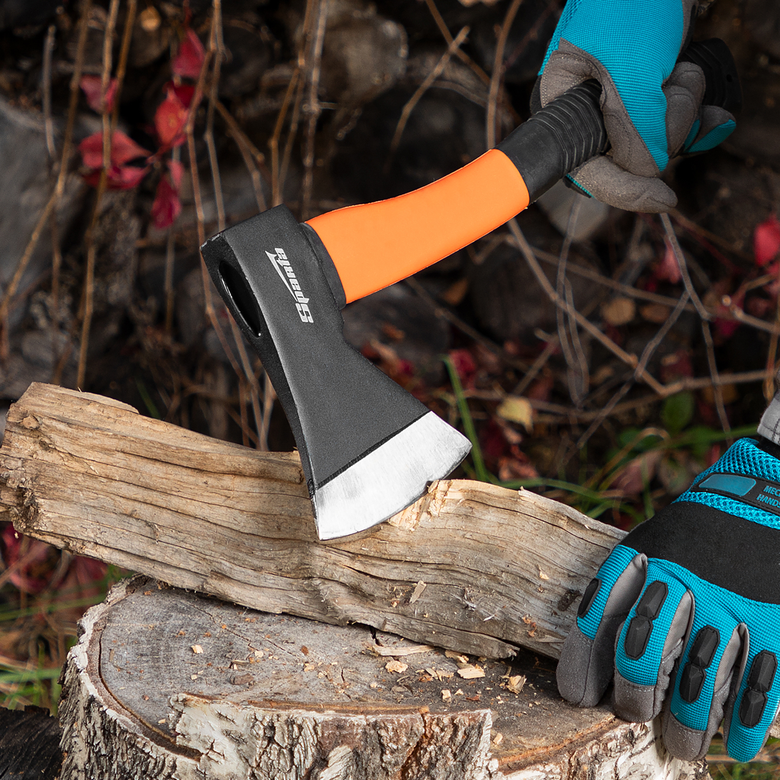 Топор Sparta 21639 с рабочей частью весом 800 г и фибергласовым топорищем рассчитан на рубку, тесание и колку древесины любых пород. Рабочая кромка, заточенная под углом 20-30°, легко врезается в древесину. Инструмент пригодится для бытовых работ: заготовки дров, рубки сучьев, небольших бревен, пеньков и т.д.