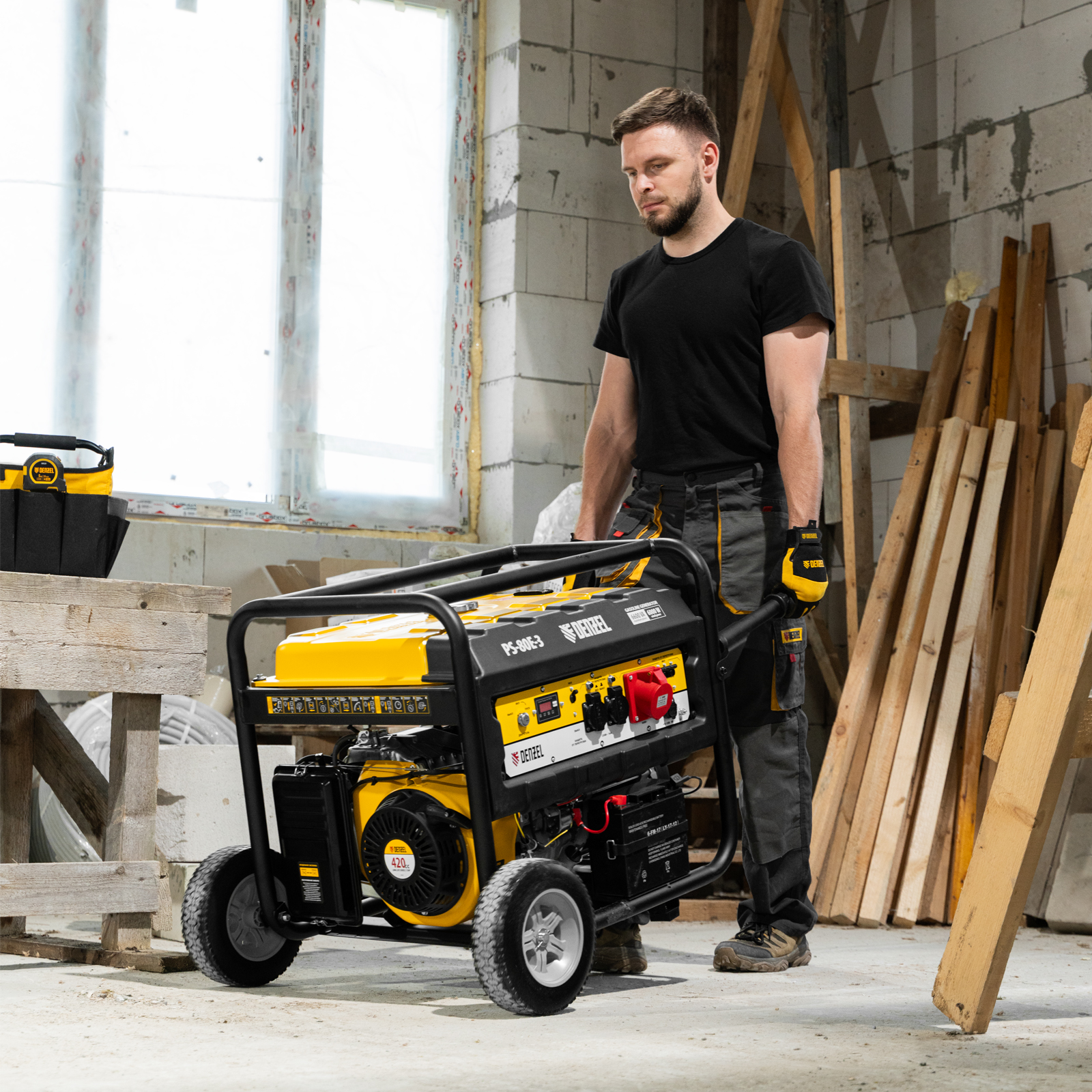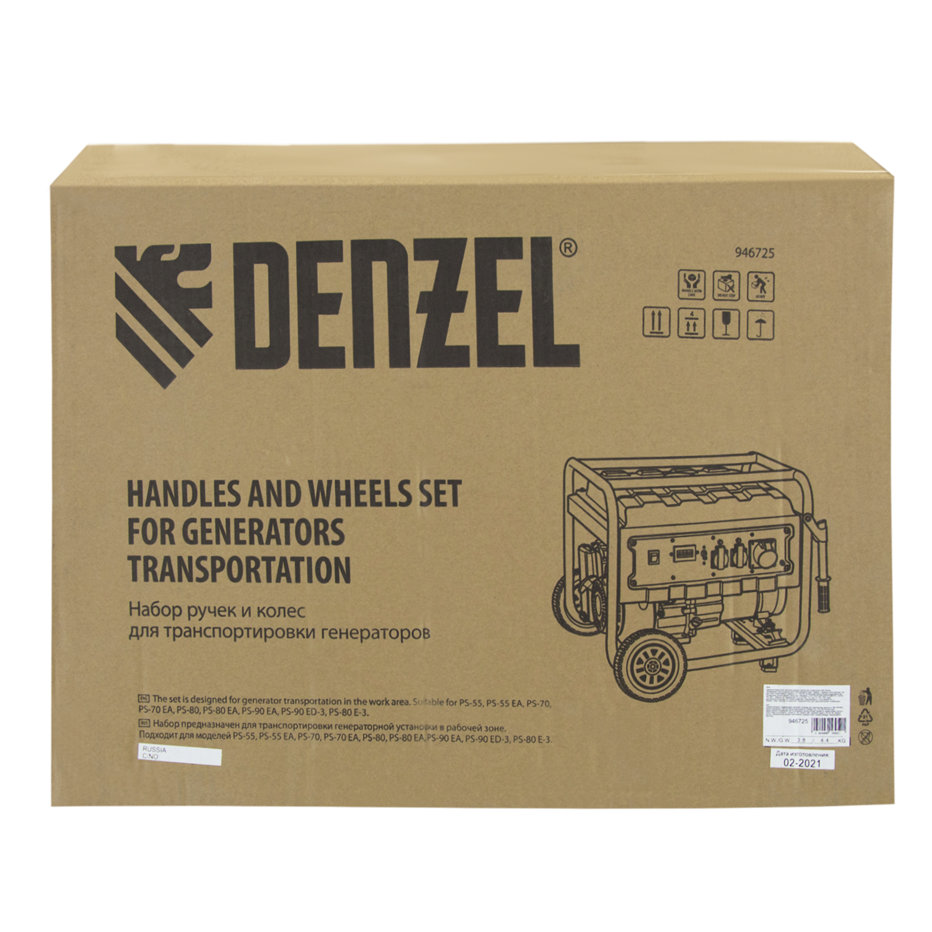 Транспортировочный набор Denzel 946725, состоящий из колес и двух рукояток, предназначен для перемещения генераторов серии PS по рабочей площадке. Подходит к генераторным установкам Denzel PS 55 EA, PS 70 EA, PS 80 EA и PS 90 EA (артикулы 946874, 946894, 946924, 946934, 946944, 946954).