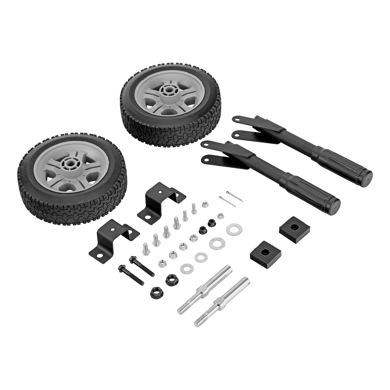Болт М8 - 2 штРукоятка - 2 штГайка М8 - 2 штБолт М8 - 4 штОпора - 2 штГайка М8 - 4 штГайка М12 - 2 штОсь - 2 штКолесо - 2 штШайба D16 - 2 штШплинт - 2 штРуководство по эксплуатации, упаковка - 1 шт |