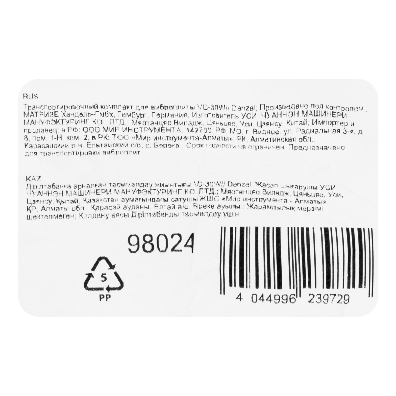 Транспортировочный комплект для виброплиты VC-30W Denzel в Уфе
