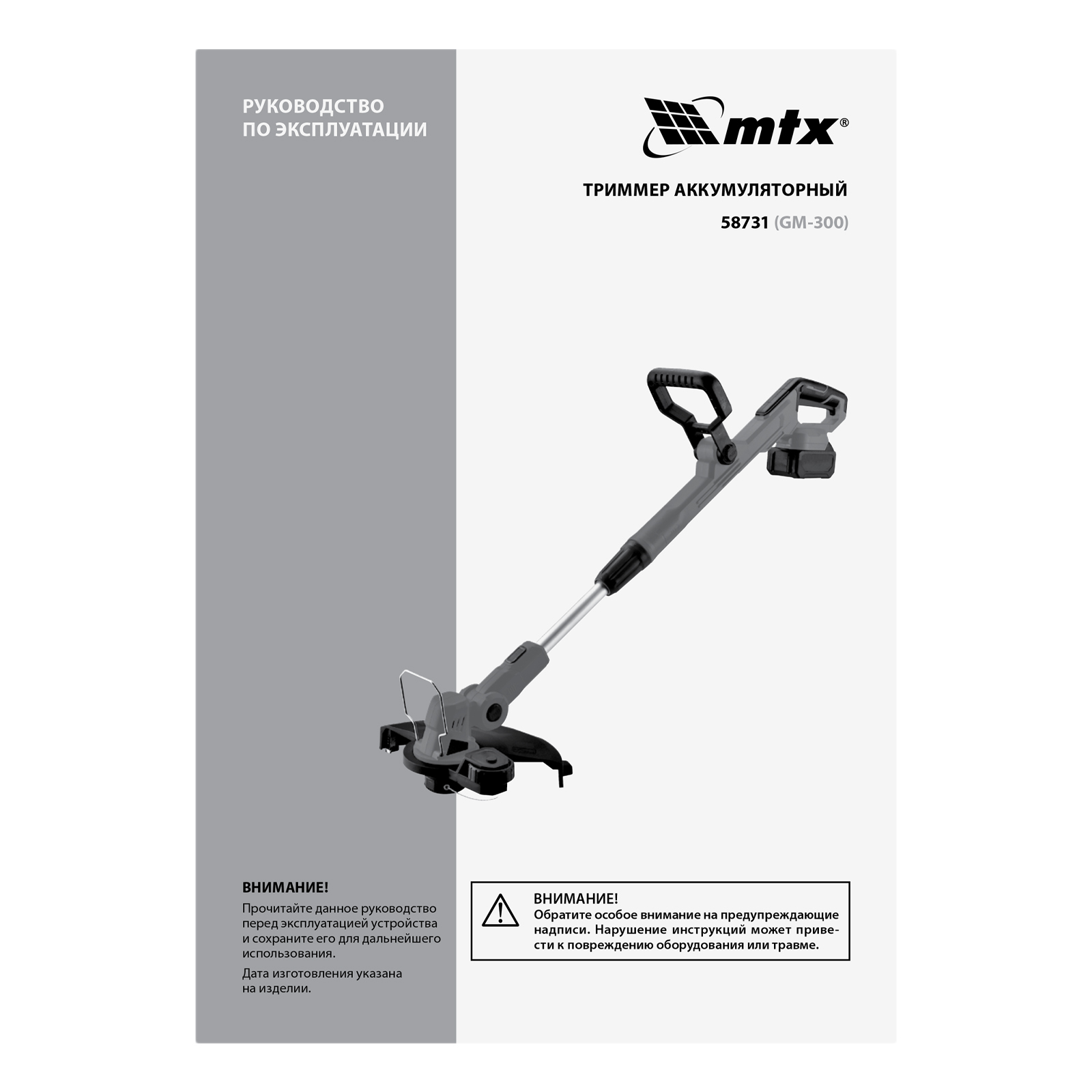 Триммер аккумуляторный GM-300, Li-Ion, 20 В MTX в Уфе
