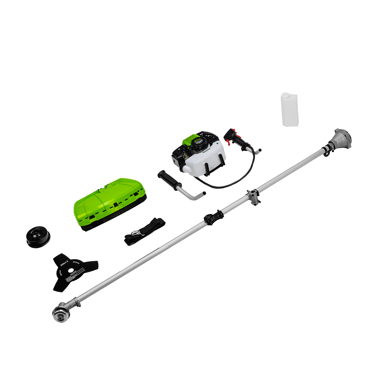 Двигатель с правой рукояткой - 1 шт, левая рукоятка - 1 штШтанга - 1 шт (состоит из 2 частей)Защитный кожух с ножом - 1 шт, кронштейн защитного кожуха - 1 штКатушка с леской - 1 шт, нож трехлопастной - 1 штДозатор для приготовления смеси - 1 штРемень плечевой - 1 штКорпус сцепления с крепежом - 1 шт, редуктор с винтами - 1 штУзел крепления рукояток с крепежом - 1 шт, узел подвеса ремня - 1 штСвечной ключ - 1 шт, имбусовый ключ Н5 - 1 шт, имбусовый ключ Н6 - 1 штБолт M6×20 - 4 шт, болт M5×15 - 2 шт, гайка M5 - 2 штХомут - 2 шт, соединительная муфта - 1 шт, коннектор штанги - 1 штРуководство по эксплуатации с гарантийным талоном - 1 шт. |