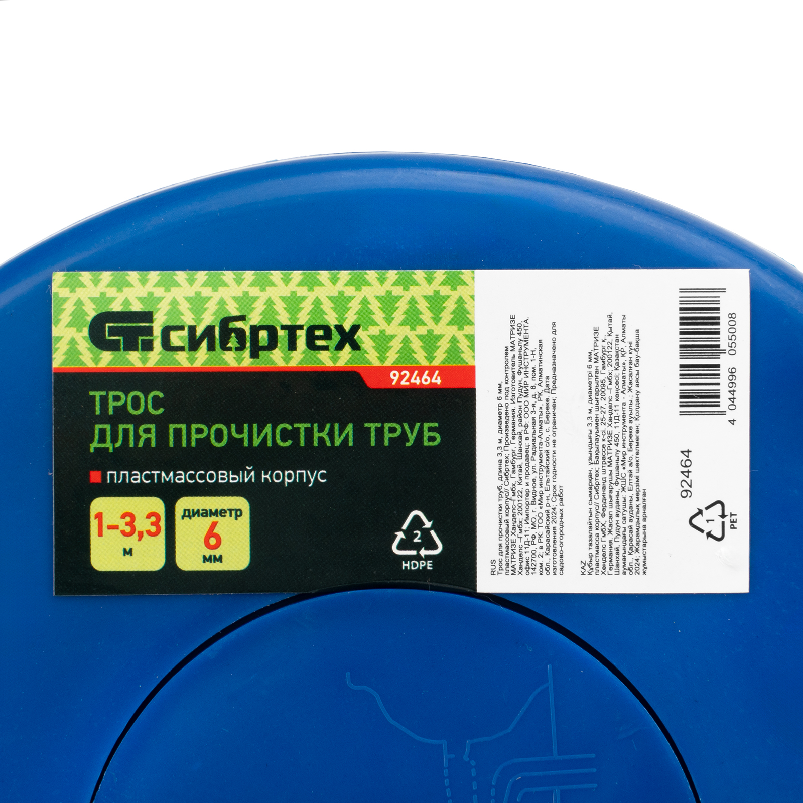 Трос для прочистки труб Сибртех 92464 длиной 3,3 м и диаметром 6 мм, в пластмассовом корпусе, избавит от засоров в канализационных трубах, удалив пробки из волос, шерсти, грязи и жировых отложений. Изготовлен из прочной пружинной стали, поэтому обладает высокой гибкостью и легко преодолевает изгибы трубопровода. Оптимален для бытового использования.